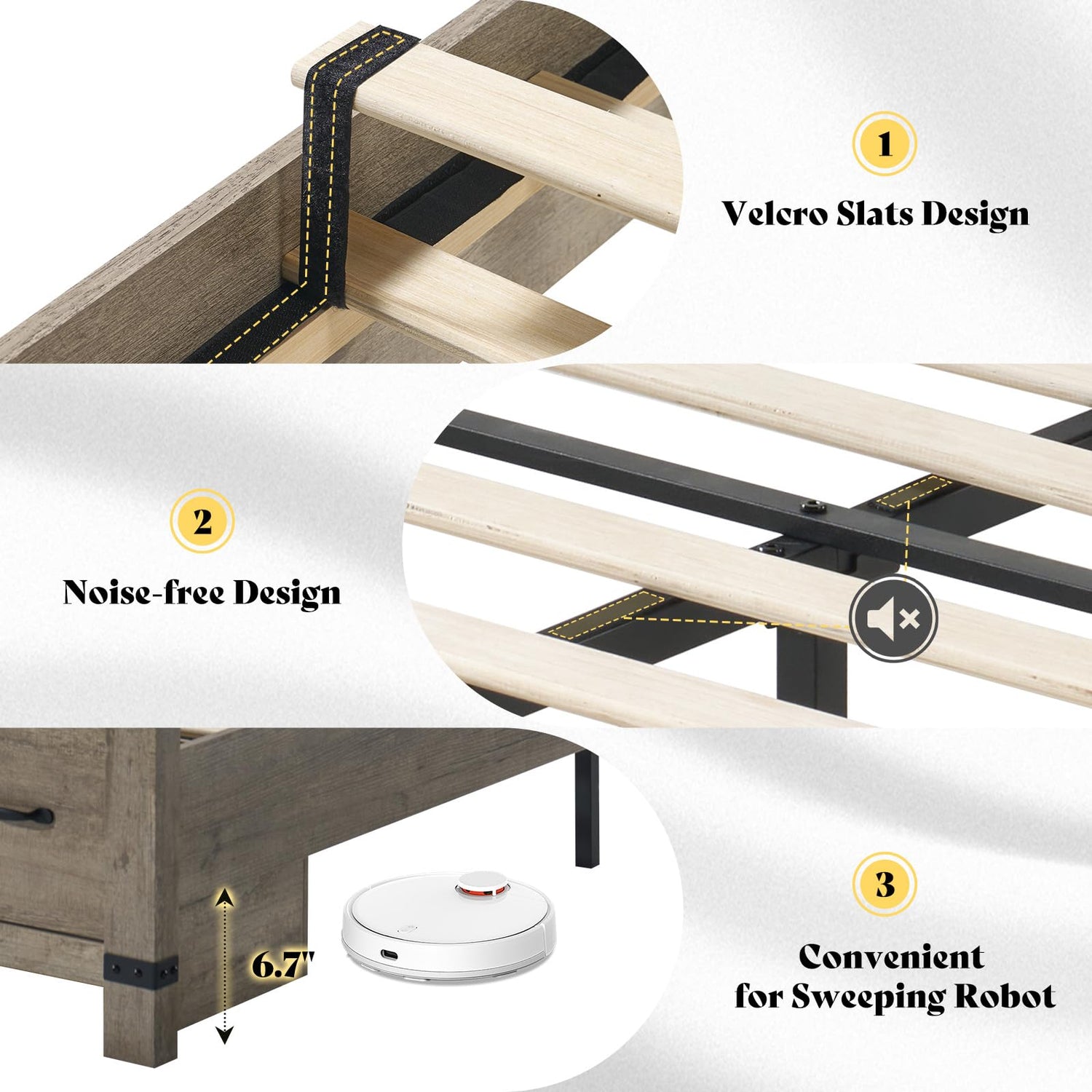 • Quick Assembly & Reliable Support : With easy-to-follow instructions, this wood bed frame can be assembled quickly. The wood slats system offers reliable mattress support, ensuring a stable, creak-free sleep experience without the need for a box spring.