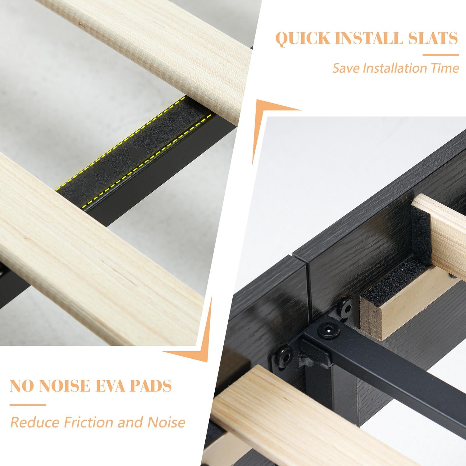 - 【No Noise-Sleep】Solid wood slats and sturdy metal frame support of full wood bed frame ensure a quiet sleep environment, with EVA noise-reducing cotton for added tranquility.