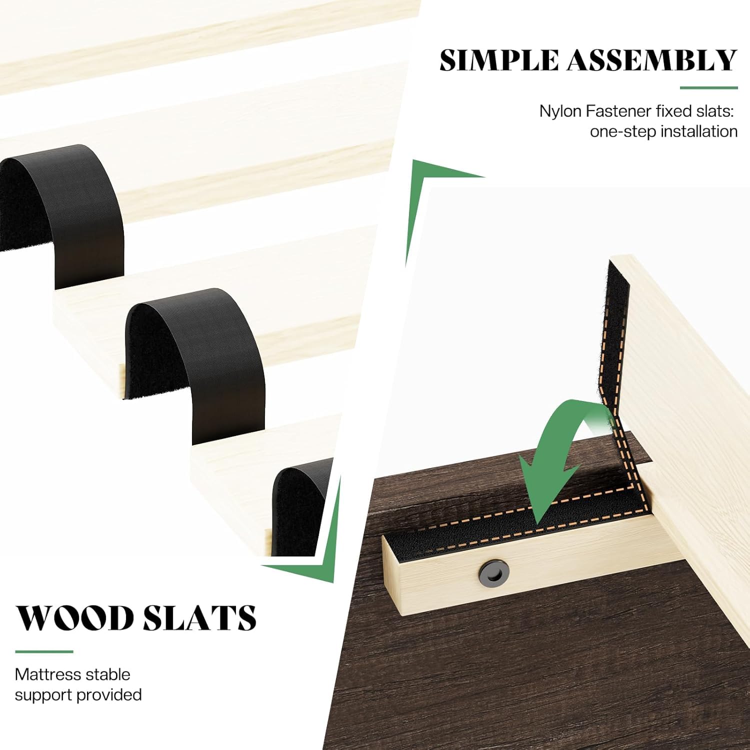 - 【Durable & Silent Frame】Built with 12 solid wood slats and a sturdy metal frame, this bed offers reliable support for up to 800 lbs, delivering steady support and a serene sleep environment