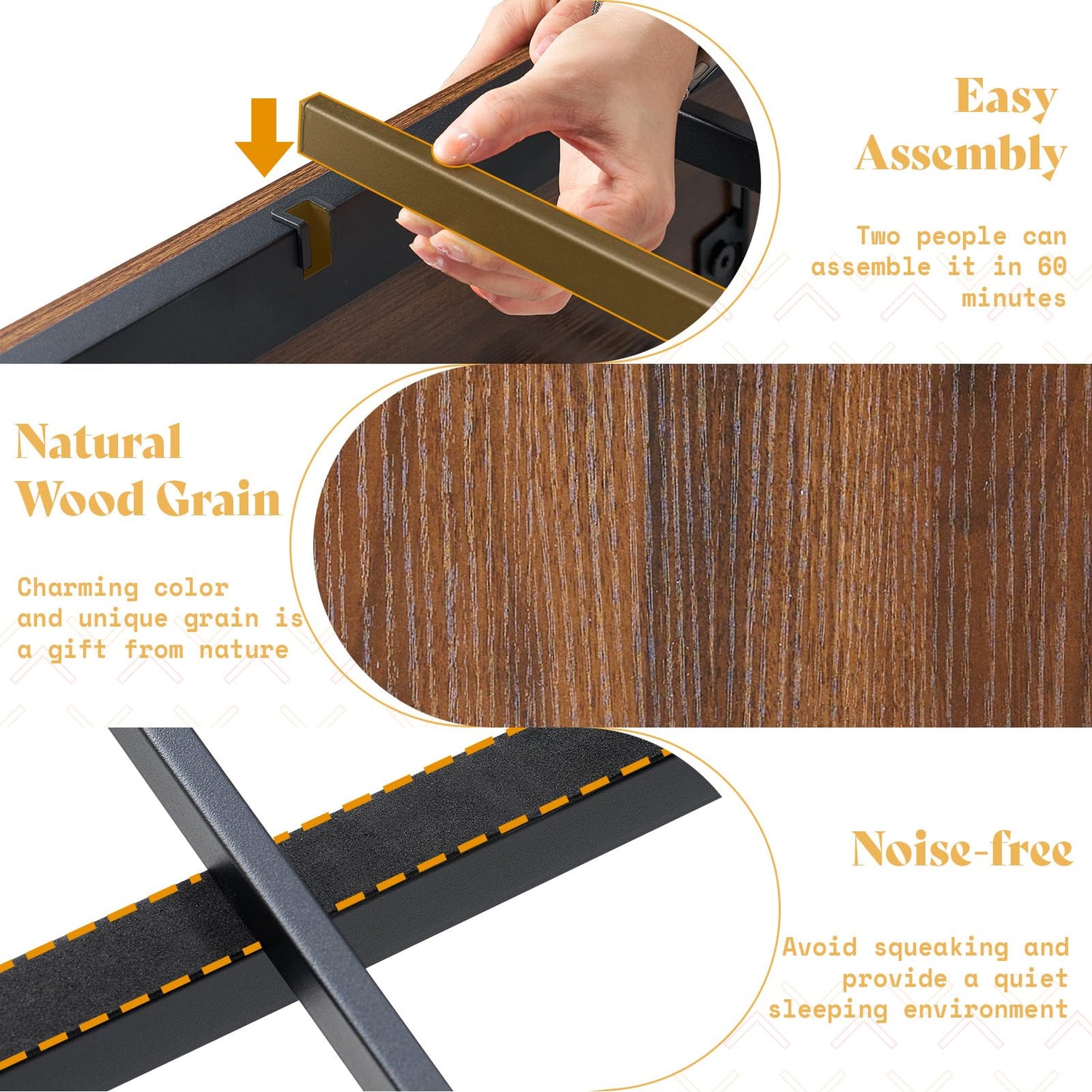 • 【Farmhouse & Rustic Style】Platform bed features a natural wood grain finish and barn headboard, charming classic farmhouse element that brings a rustic and vintage aesthetic to your room and matches any home style