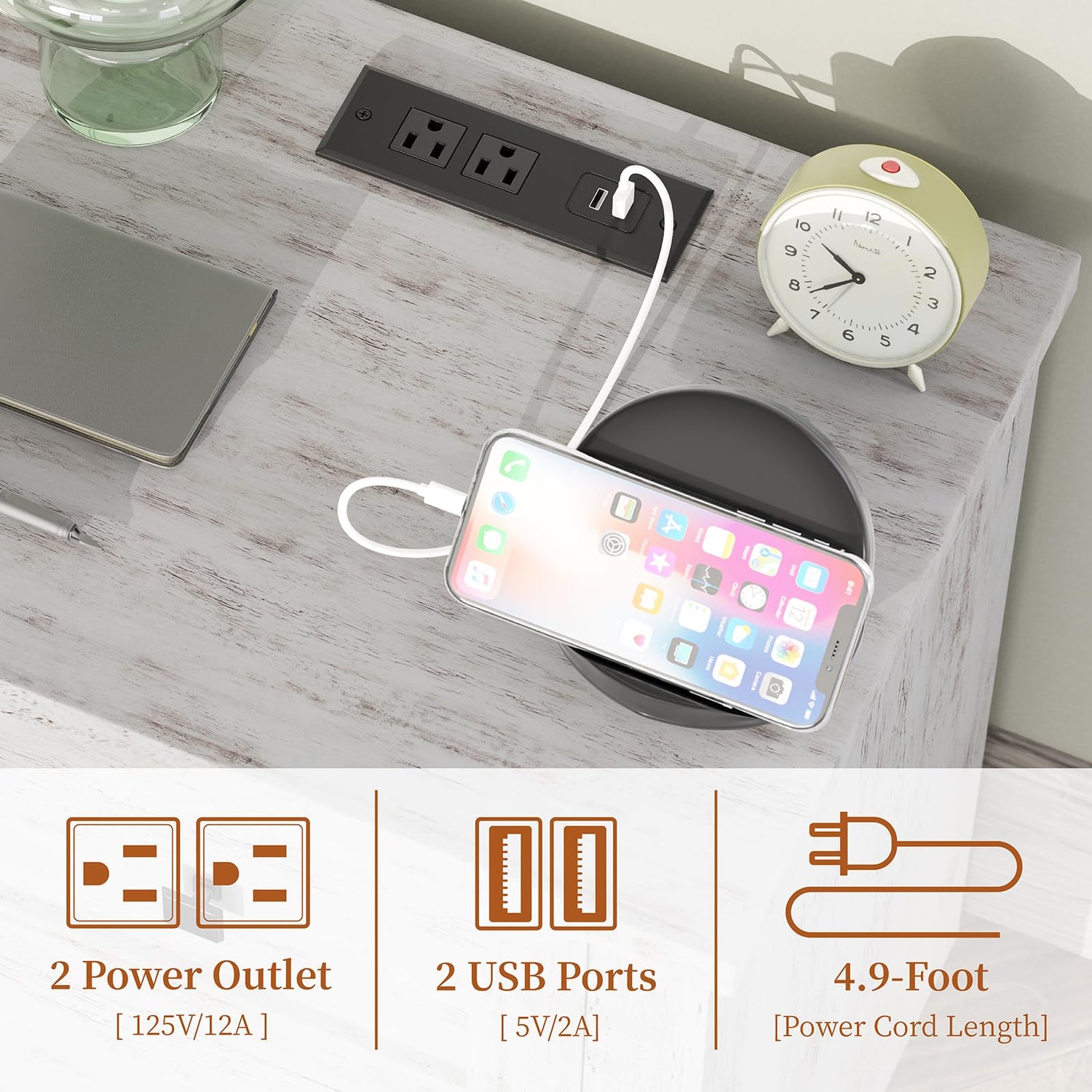 - Charging Function with USB Ports: This nightstand with charging station is arranged with 2 Standard AC Outlets and 2 USB ports. Side table with a hole at the back for organizing cords, making the desk neater while providing convenience for charging your devices such as cell phones, tablets, earphones.