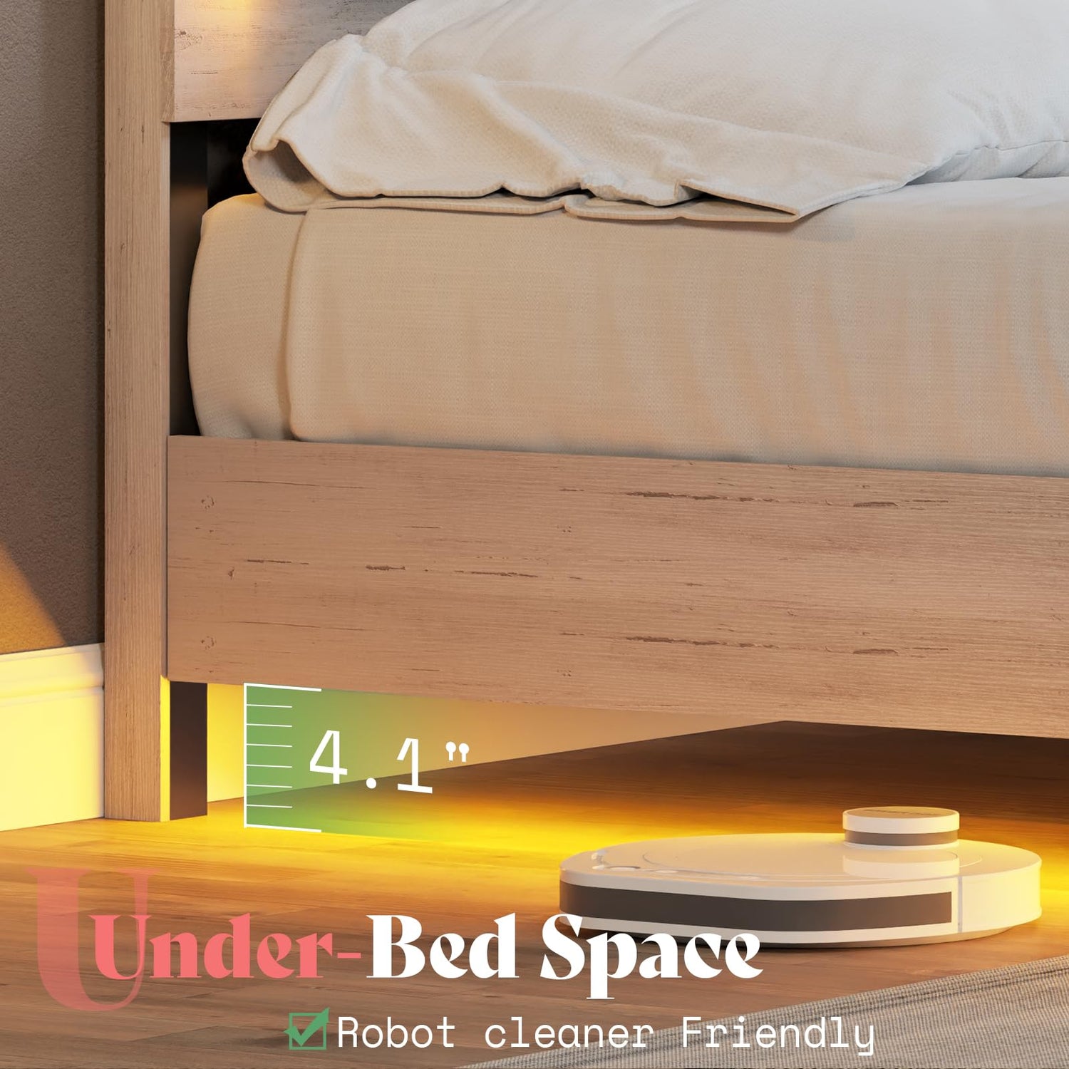 Constructed from sturdy materials, this bed frame promises durability and stability. The hidden corner legs work to enhance its strength, while premium wooden slats provide exceptional support for your mattress, ensuring a restful night’s sleep for years to come.