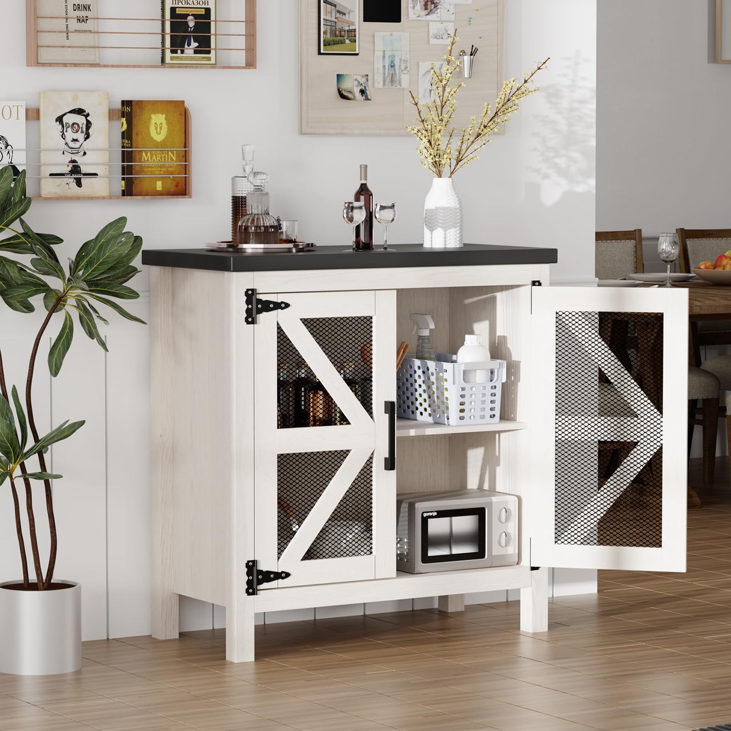 • PERFECT STORAGE SOLUTION--Our Farmhouse storage cabinet is a versatile funiture that works great for storing table linens, dinnerware as a buffet cabinet, Perfect for displaying media equipment and organizing daily essentials and toys as a TV stand and sidebroad cabinet, and offering ample storage space for entryway cabinet. Even turns into a "safe space" for your pets. Say goodbye to clutter with this functional storage cabinet!