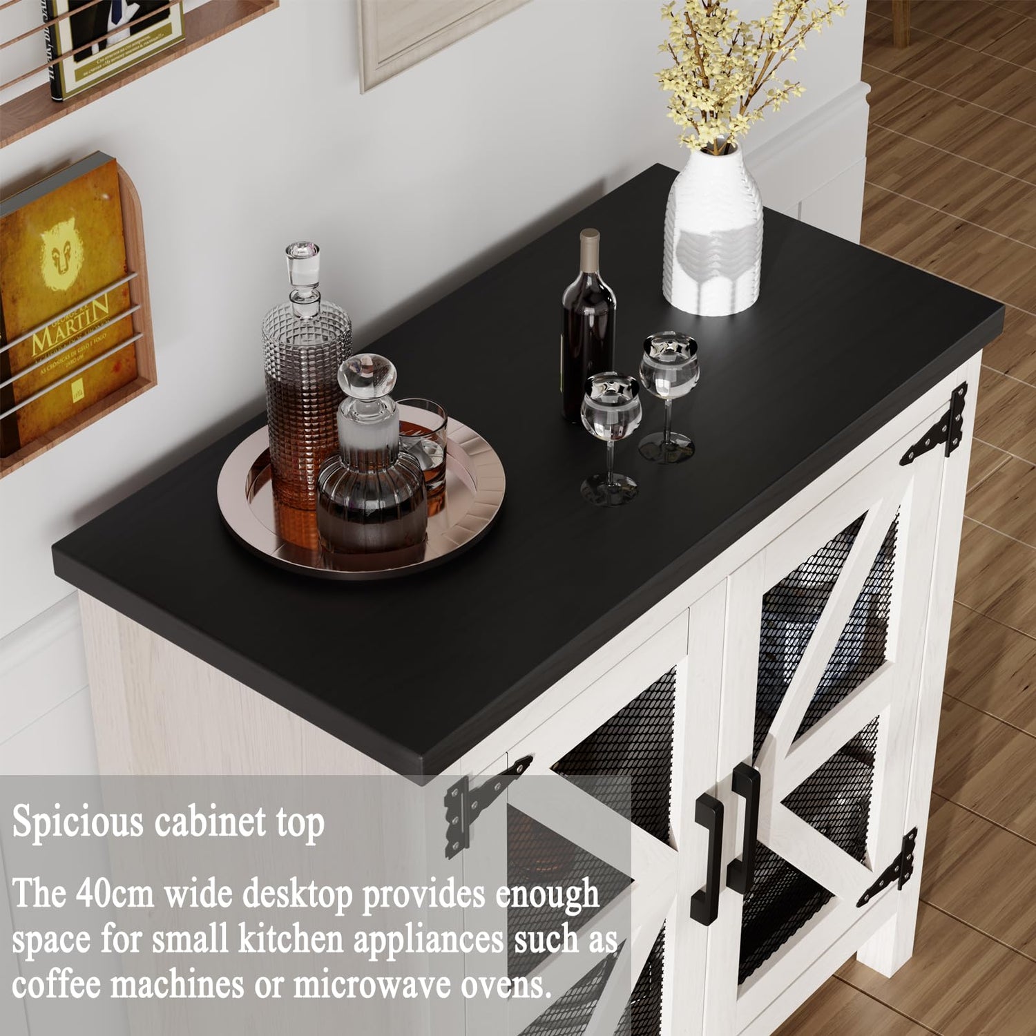 ANWBRAOD Farmhouse Buffet Cabinet 31.4" Sideboard Storage Cabinet with Barn Door and Adjustable Shelf Wood Rustic Accent Cabinet for Dinning Room, Kitchen, Hallway ULSC003W