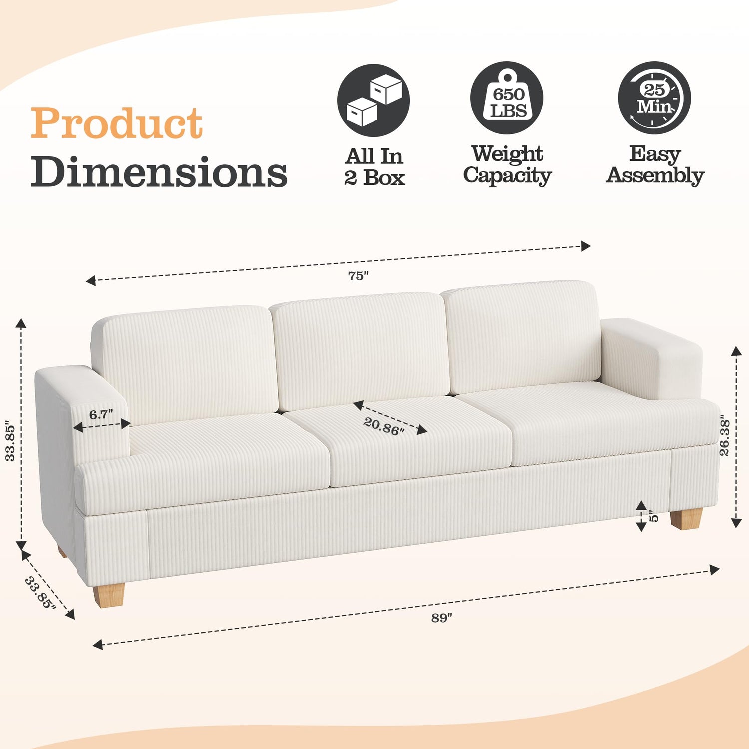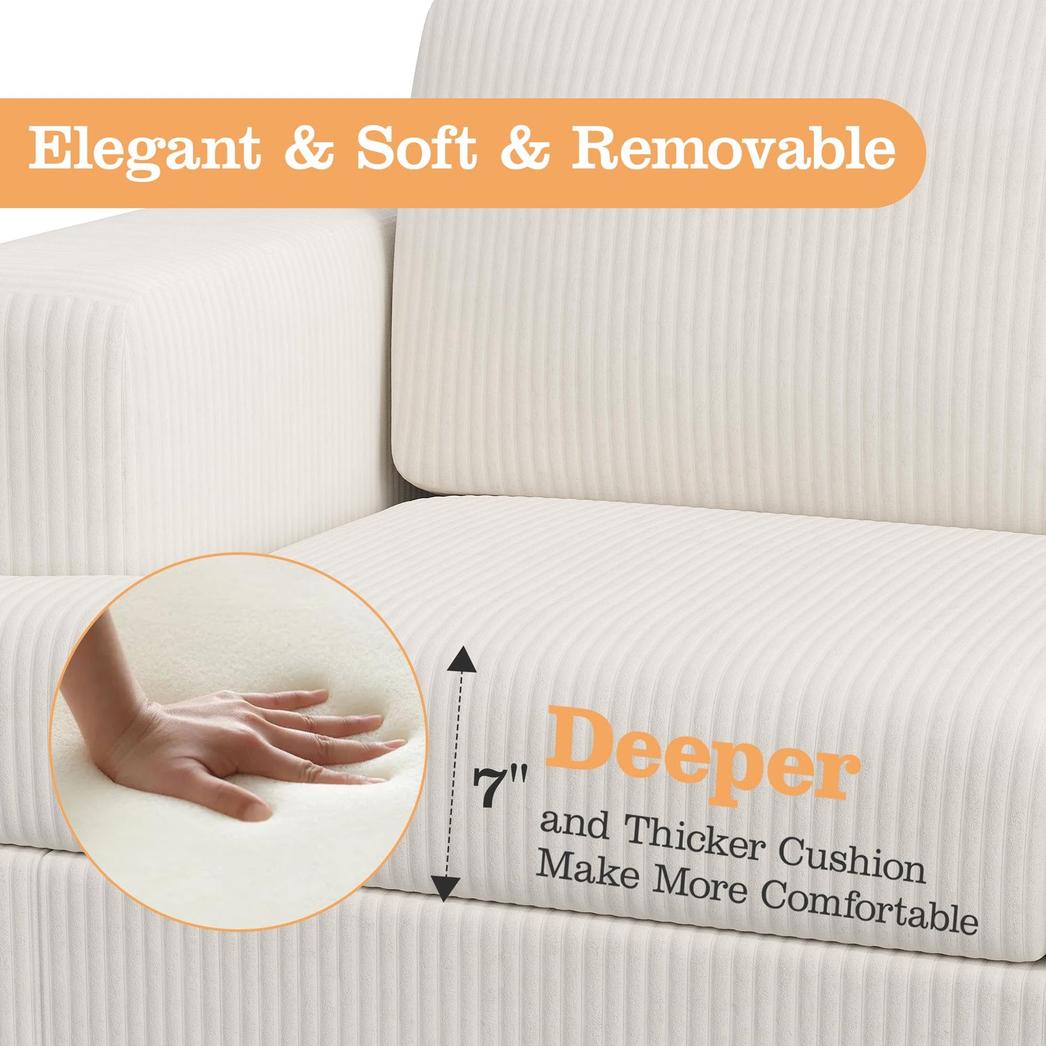 - 【Comfortable Corduroy 】Made entirely of corduroy fabric, offers a soft, comfortable, and highly breathable seating experience, ensuring the sofa remains dry and comfortable. And the overall frame adopts the combination form of multi-layer solid wood plywood and iron frame, which makes the sofa couch have better load bearing and stability.
