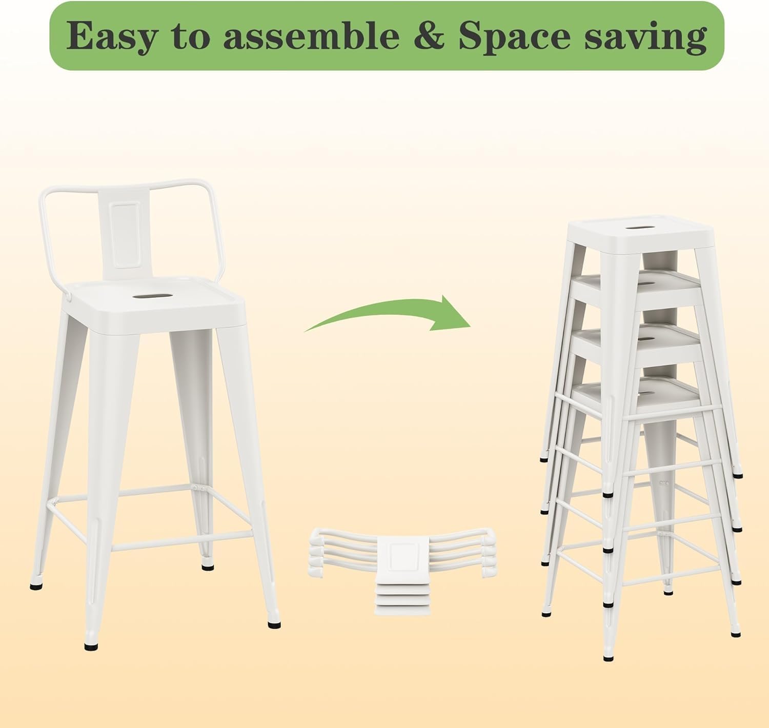 - 【Detachable and Stackable】 With detachable backest, Compact stackable(Need to remove the backrest to be able to stack) for space saving storage, easy assembled. If you encounter any problems during the assembly process, please contact us in time.