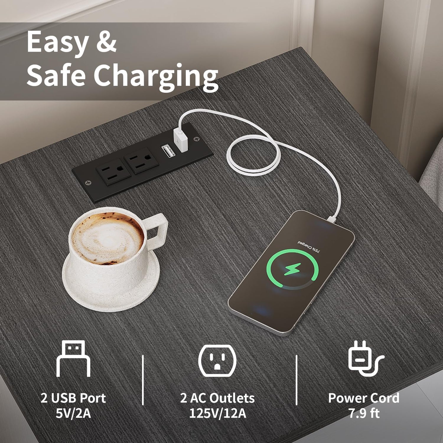 - Convenient & Safe Charging Station – AURINEST farmhouse night stands with charging station containing 2 AC outlets, 2 USB ports and a 7.9ft power cord. The white night stand with charger station provide safe charging for lampstands, cellphones and other nearby equipment.