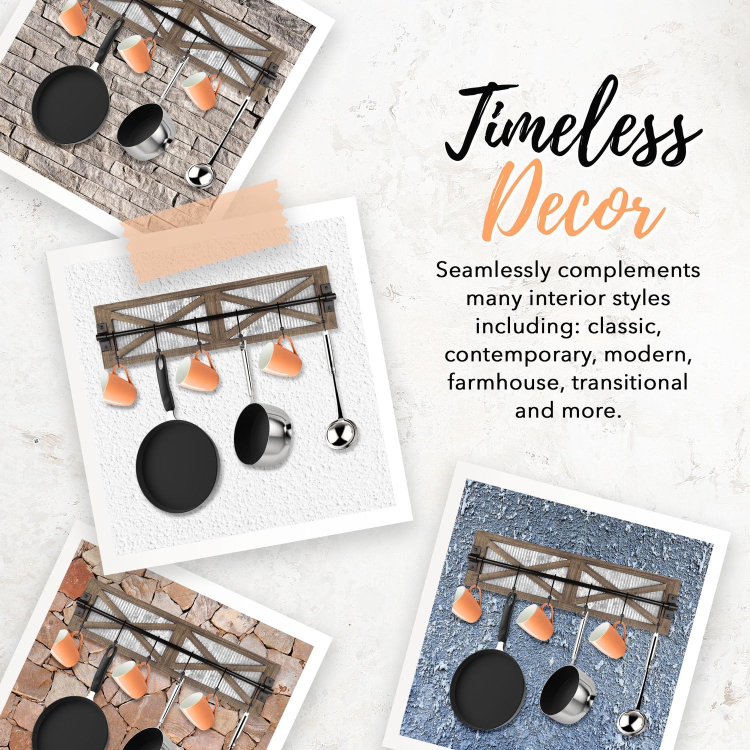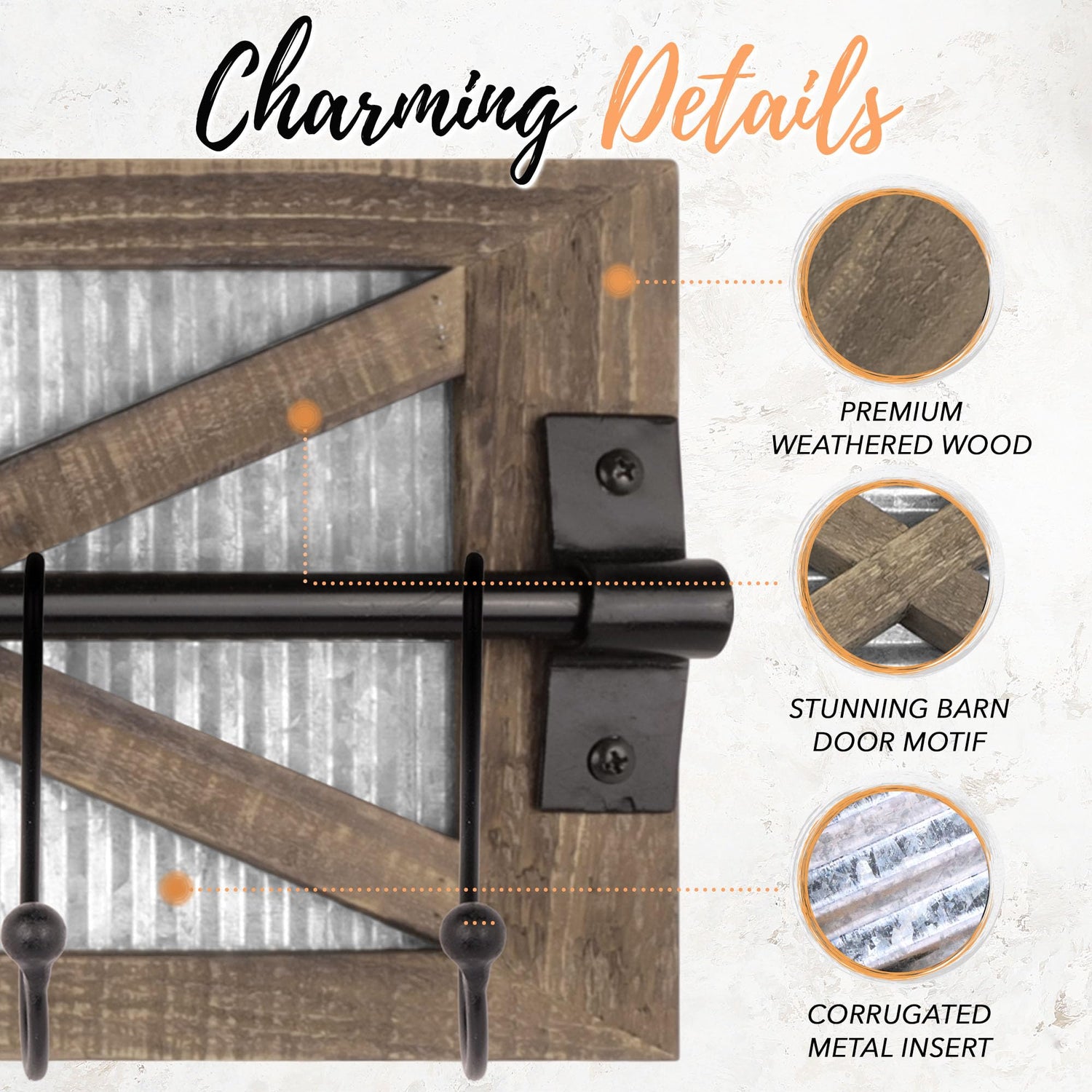 - Rustic Farmhouse Style: This wall coat rack with hooks blends reclaimed wood and corrugated metal for a stylish wall mounted coat rack accent
