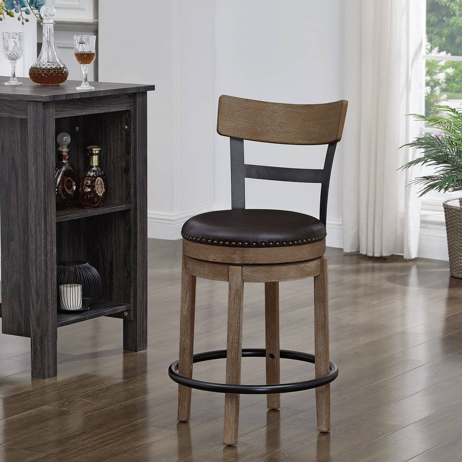 - ✔ DESIGN STYLE: Kitchen Barstool with back in Light brown wire-brushed finish and antiqued nail-head trim ties it all together, find the perfect balance between fashion-forward and farmhouse.