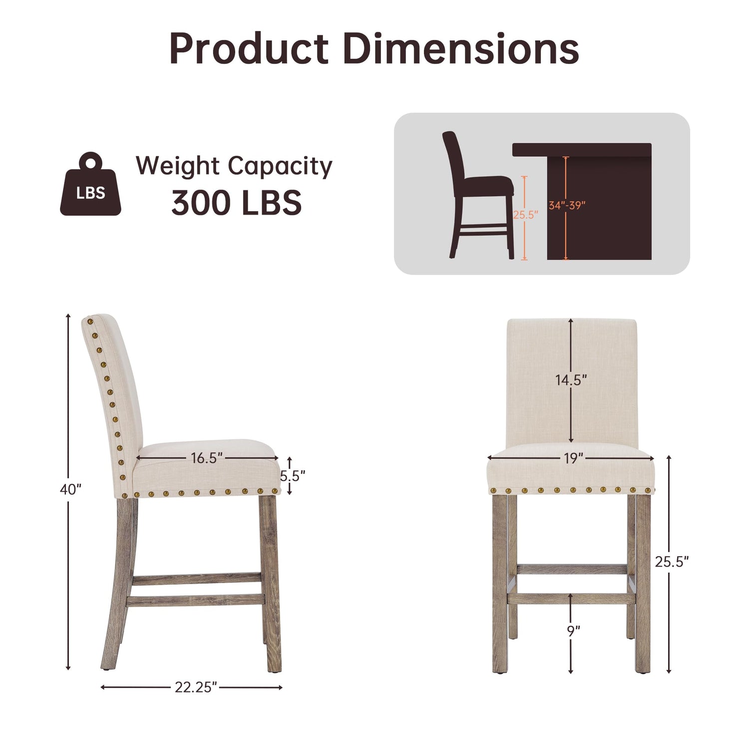 - Classic Farmhouse Aesthetic: The bar height bartools features a classic country design that adds a touch of sophistication. Featuring smooth wooden legs and linen fabric seats, these bar chair exudes classic charm and rustic sophistication with exquisite craftsmanship.