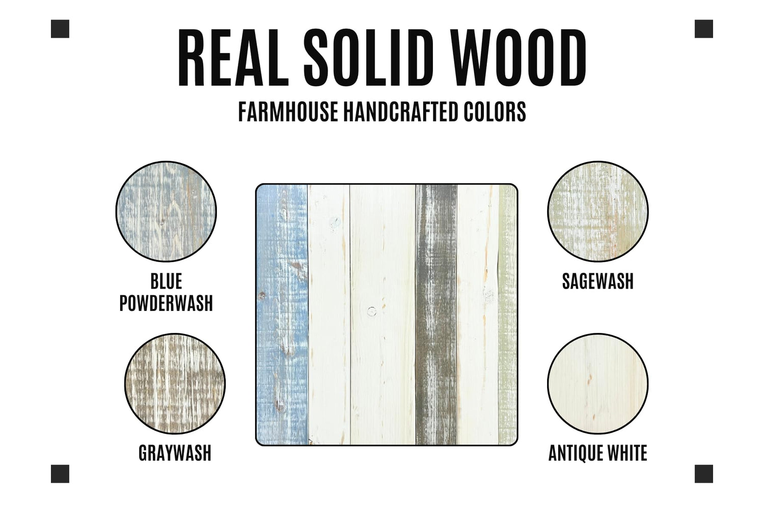 - Soft-Toned Finishes for Subtle Charm. The Antique White, Blue Powderwash, Sagewash, and Graywash finishes are thoughtfully designed with soft tones that evoke a sense of calm and sophistication. These gentle hues create a harmonious blend, ideal for modern farmhouse, cottage, or coastal-inspired interiors.