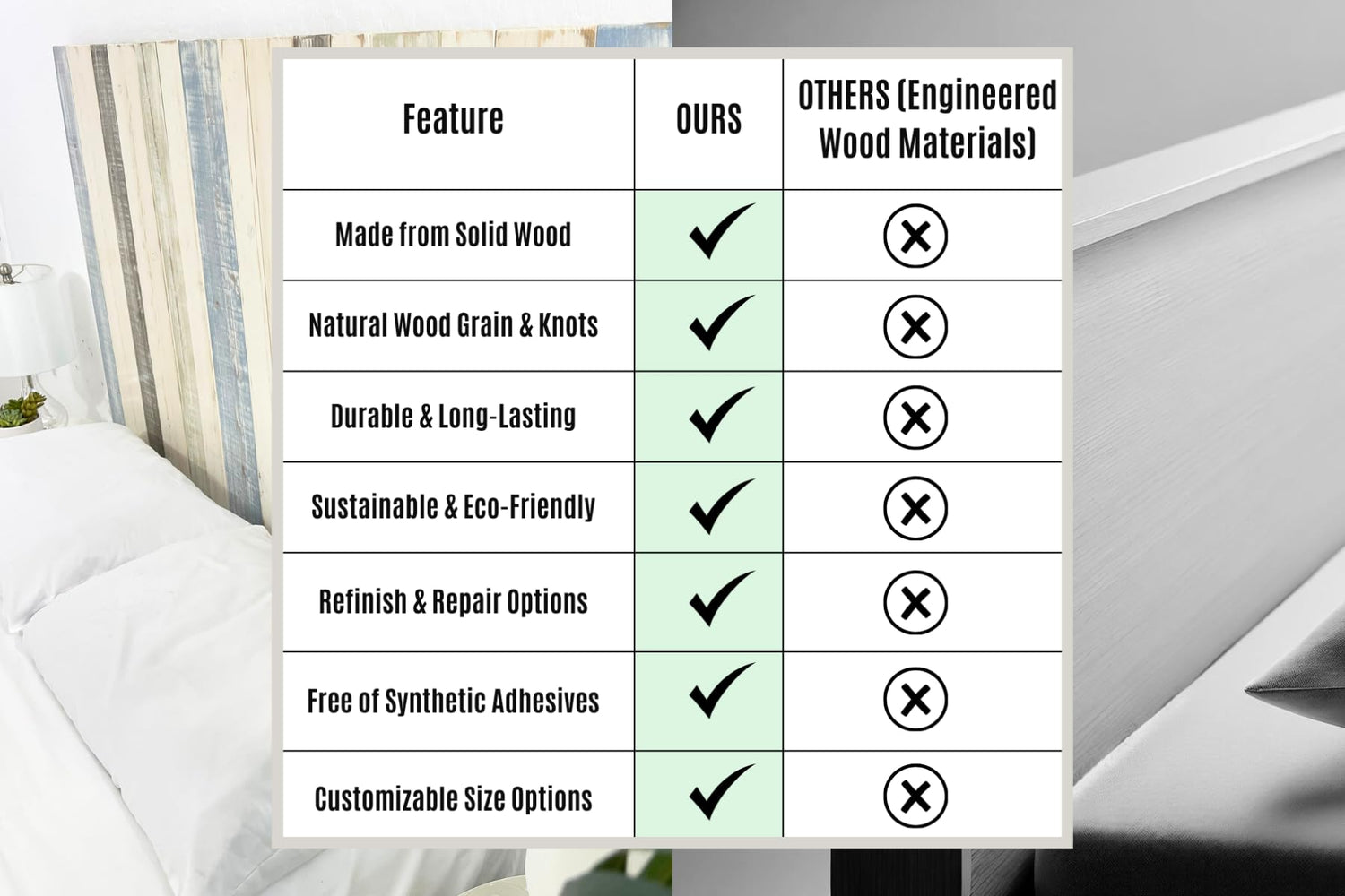 - Distinctive Natural Wood Grain. Handcrafted in the USA from real wood, each plank showcases unique grain patterns and knots, adding depth and character to the Cal-king size head board. The natural variations make each piece one-of-a-kind, perfect for adding an artisanal, handcrafted touch which is made in America.