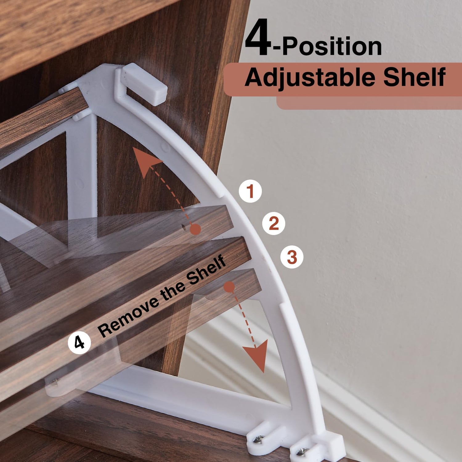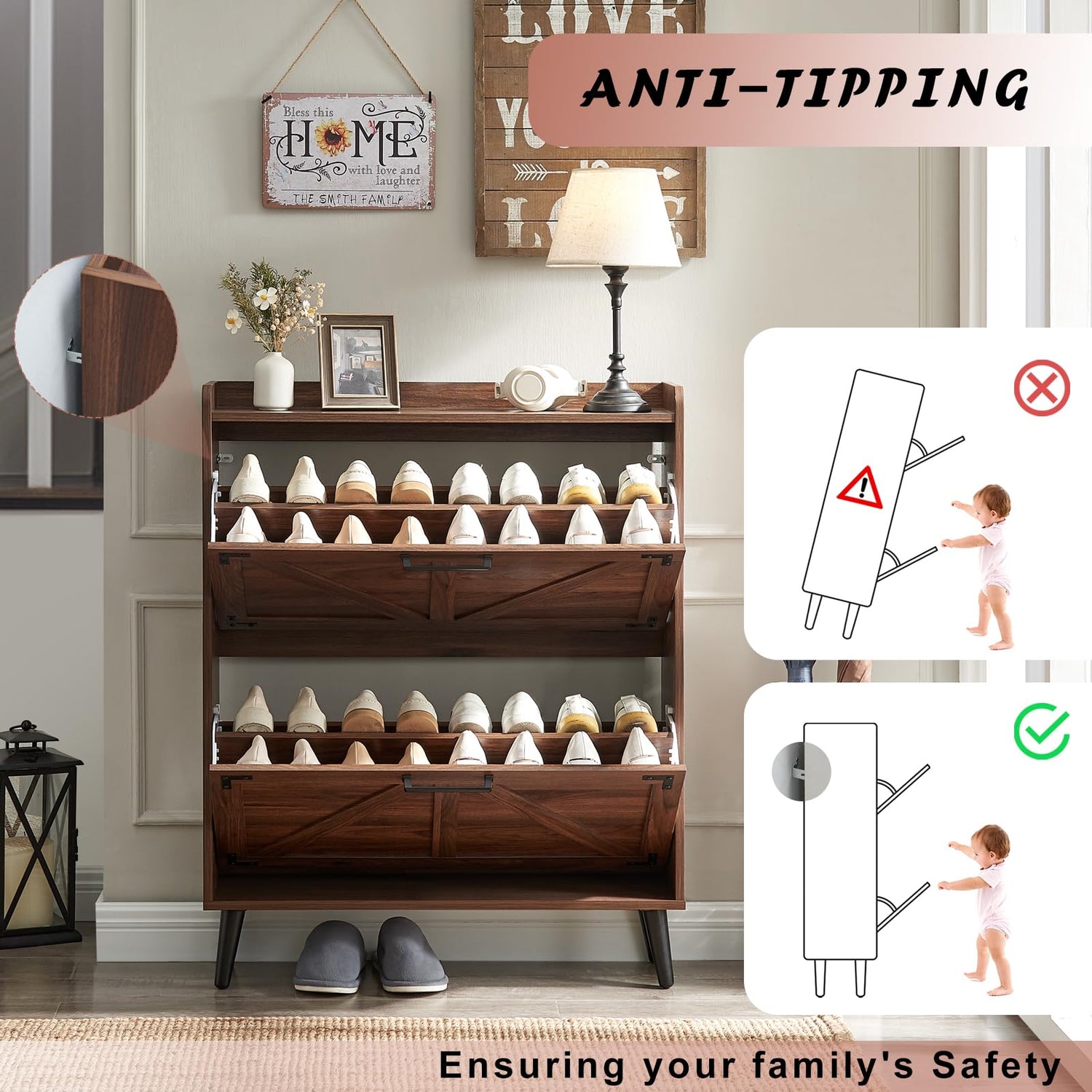 Barnyatoh Shoe Storage Cabinet with 2 Flip Drawers, Farmhouse Hidden Shoe Organizer, Narrow Slim Shoe Rack Cabinet for Entryway Hallway,Walnut