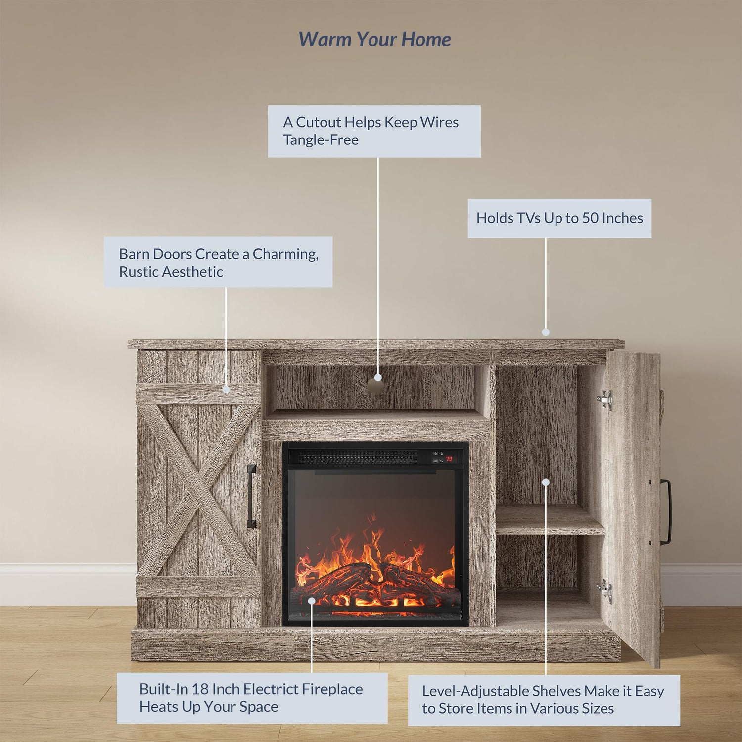 BELLEZE 47" TV Stand with 18" Electric Fireplace Heater & Media Entertainment Center Console Table for TV up to 50" with Open Storage Shelves & Cabinets - Veropeso (Ashland Pine)