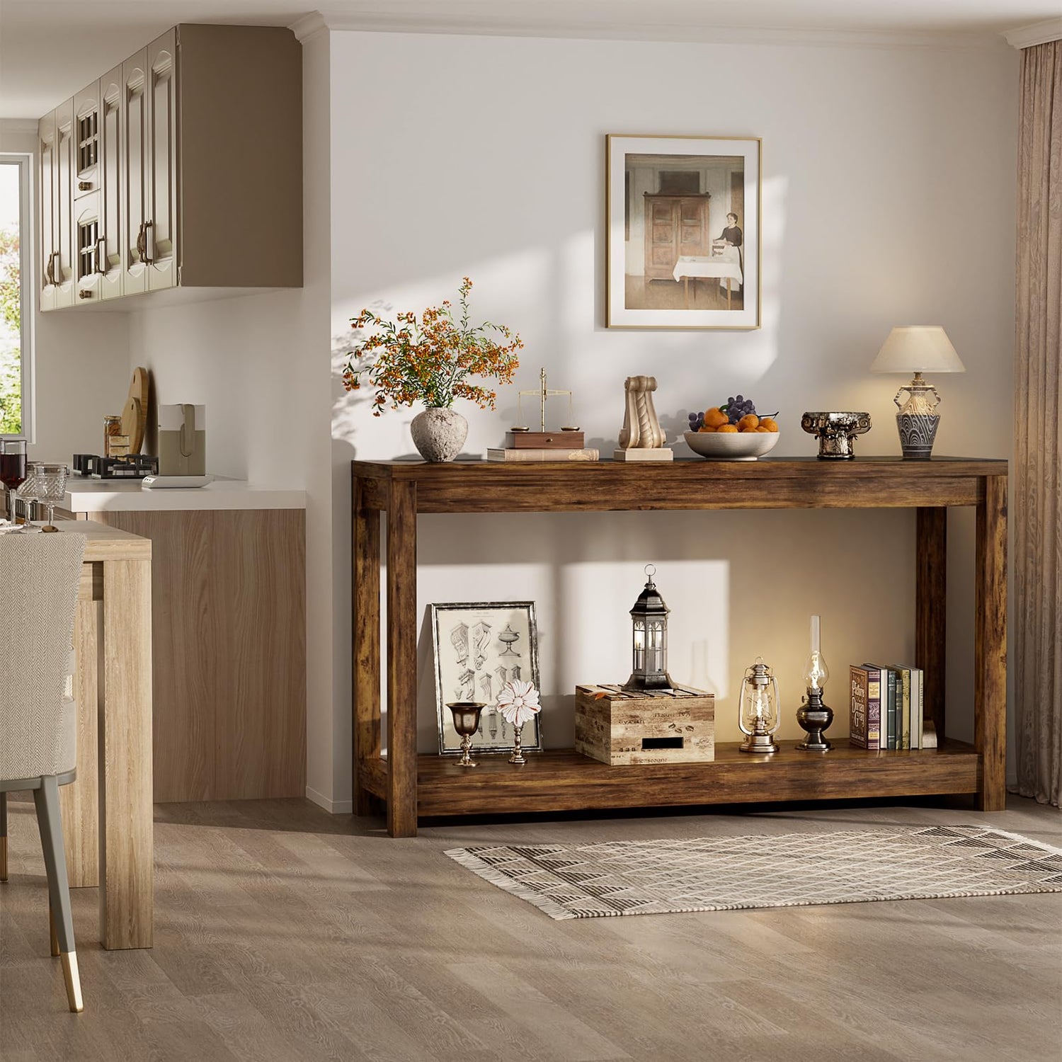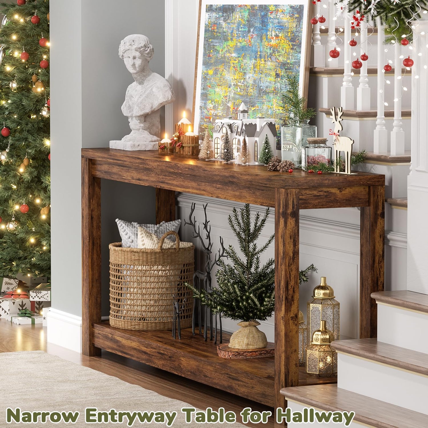 Besiost 47" Farmhouse Wood Entryway Table Narrow Console Table with Storage Behind Couch Sofa Table with Shelves Entry Way Table with Open Storage, Easy Assembly, Rustic Brown