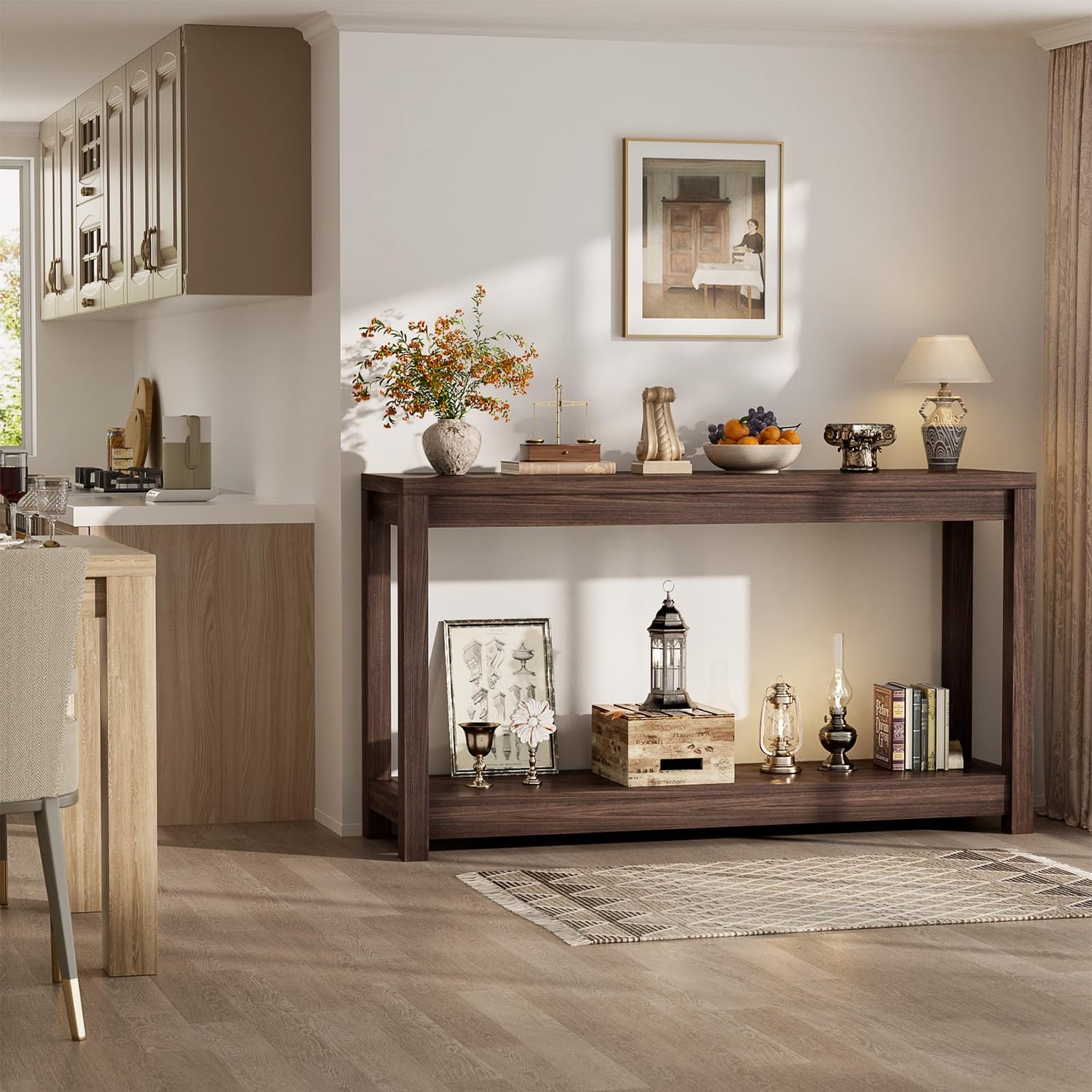Besiost 47" Farmhouse Wood Entryway Table Narrow Console Table with Storage Behind Couch Sofa Table with Shelves Entry Way Tables with Open Storage, Easy Assembly, Black Walnut