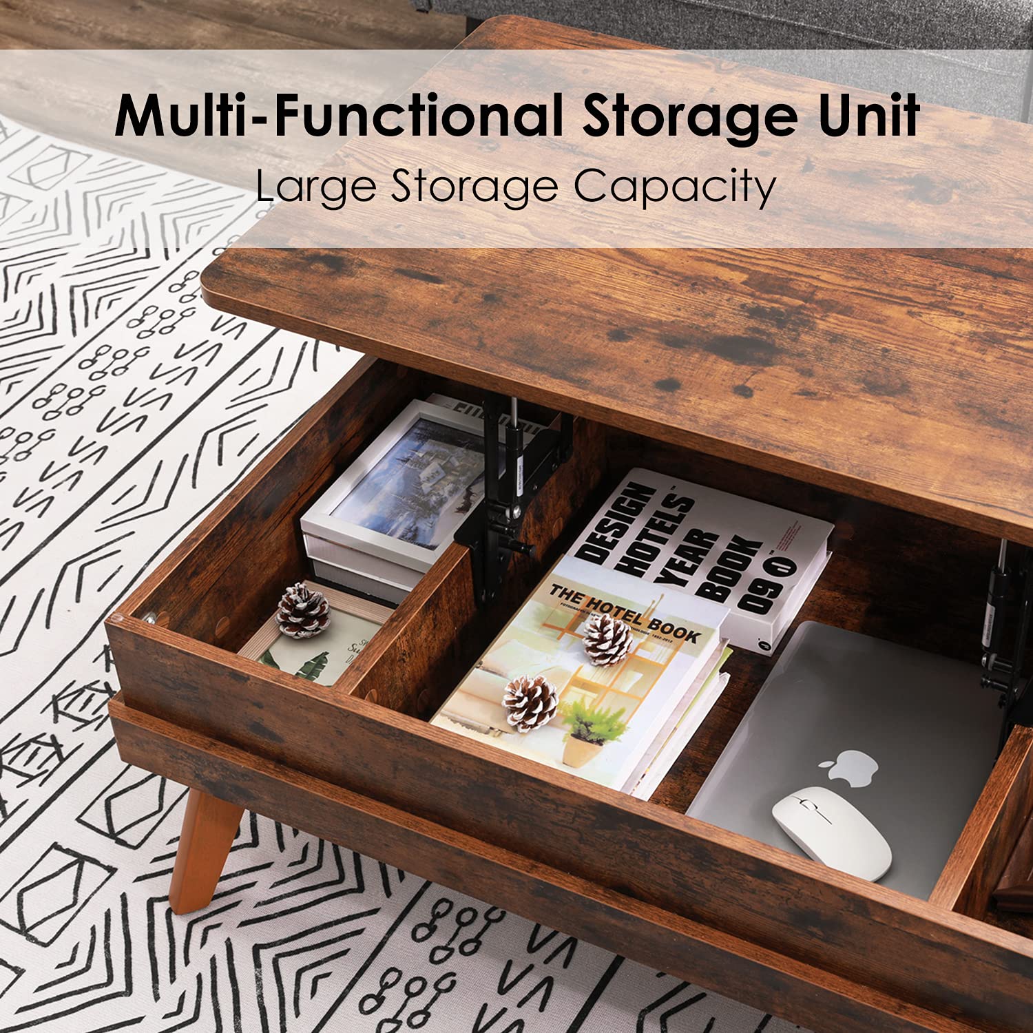 - 🎯【Sturdy & Durable】The combination of 4 solid wood feet and high-strength particleboard ensures the high stability of this lift up center table. This center table is safe and strong enough for your long-term use. If the package was damaged due to the careless transportation, please feel free to contact us.