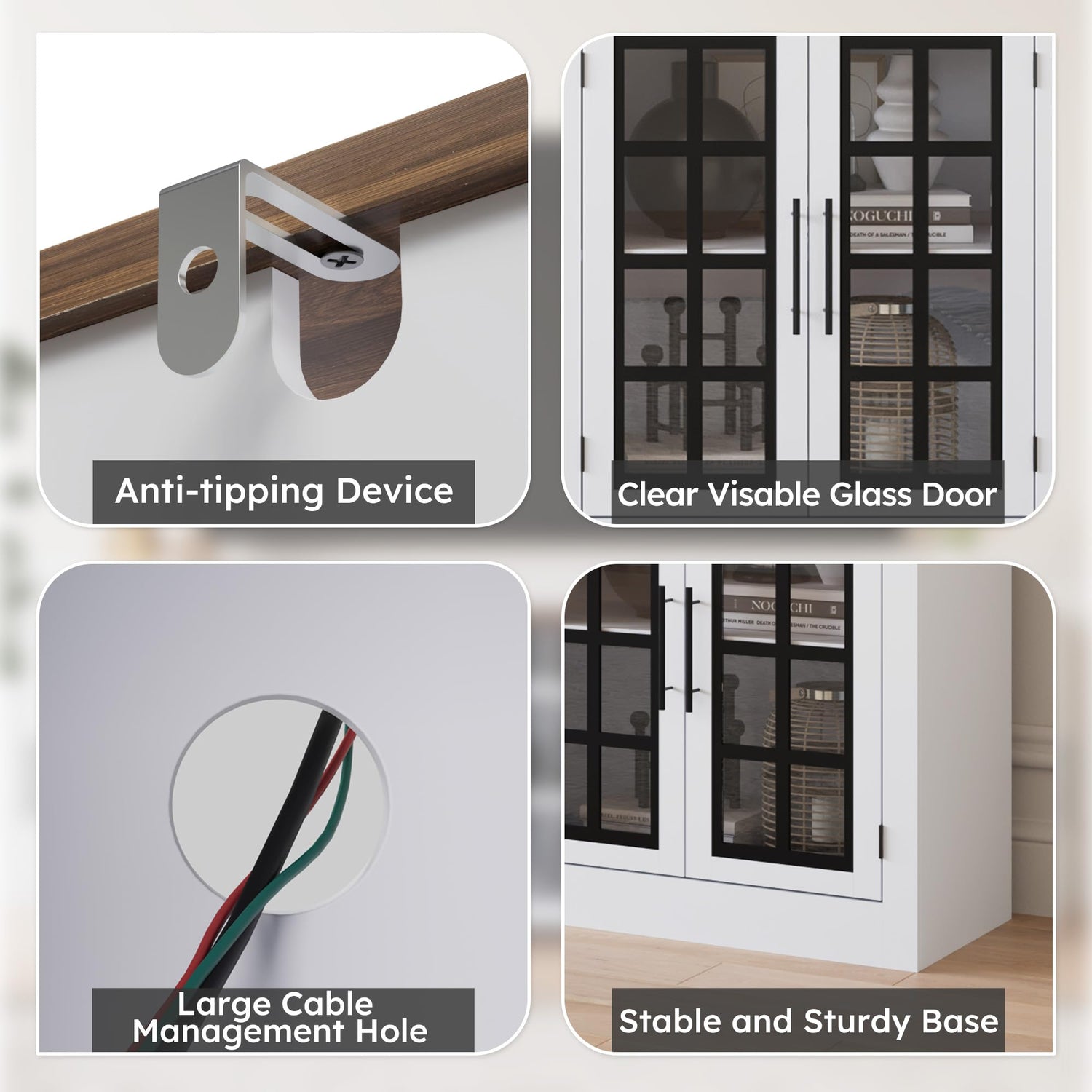 - 【Sturdy & Durable】This entertainment center is made of high-quality engineered wood, combined with a thickened base, which is very stable and durable. This media console is equipped with a anti-tipping device to prevent tipping and ensure stability and safety. The metal handle and hinge can withstand frequent use, and the magnetic door can better close the door.