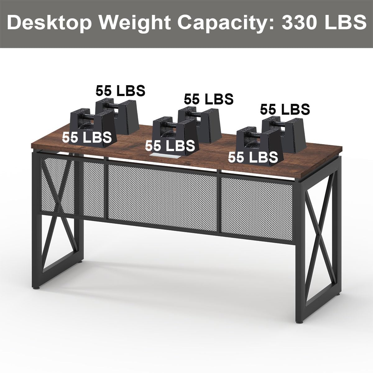 - 100% NOT WOBBLES: Heavy Duty metal x-shaped legs and support mesh frame on the back, add an extra support tube under thick desktop makes this 60 inch modern computer desk super strong and sturdy. Besides 4 pcs adjustable feet will strengthen the stability and keep balance. Weight Capacity of desktop is 330 LBS.