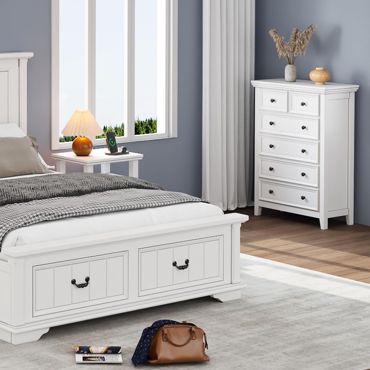 BOSHIRO White Dresser for Bedroom, 6 Chest of Drawer, 6 Drawers Dresser Tall, Farmhouse Storage Drawers Cabinet for Living Room,Filing Cabinet for Home Office