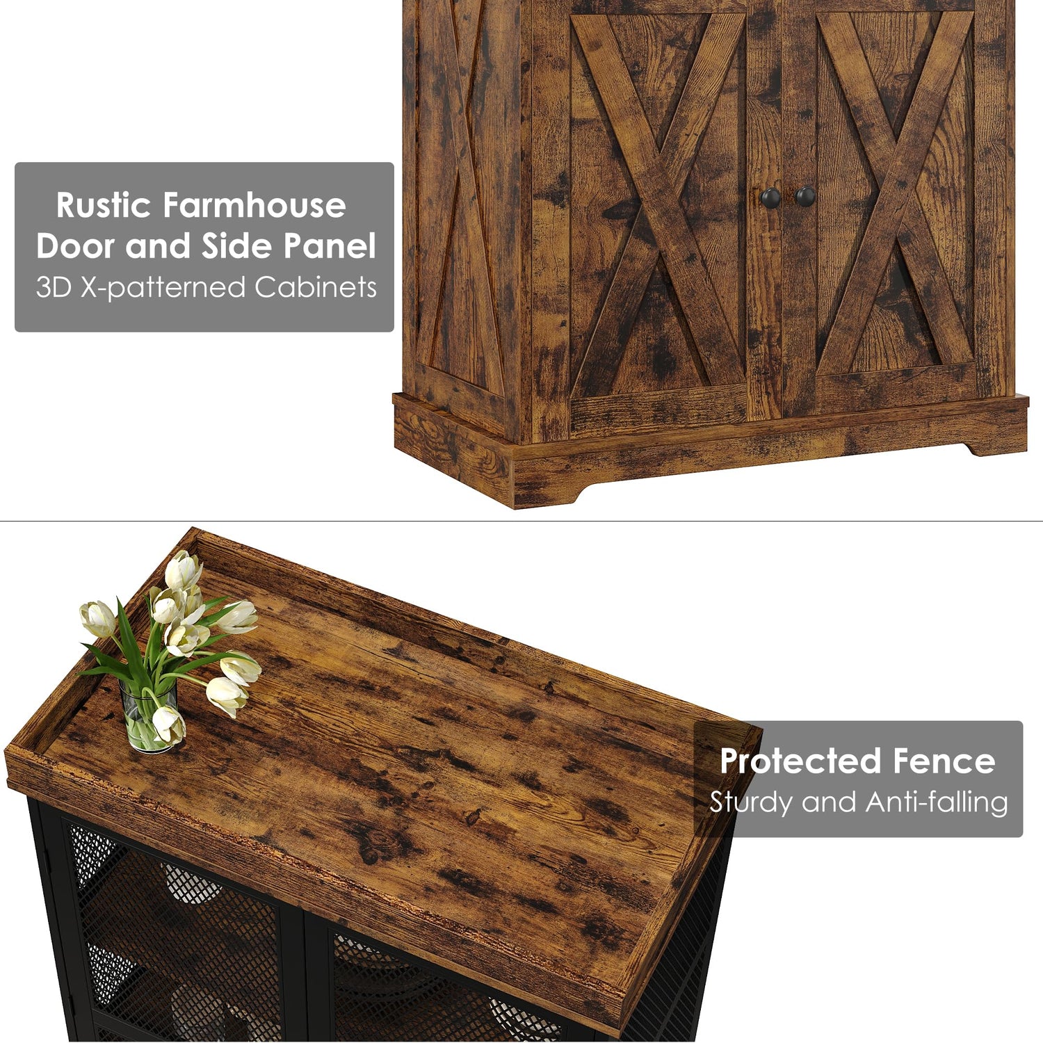 - 【Vintage Farmhouse Style】 Our tall storage cabinet features rustic brown panels with unique wood grain, inset wooden bars for farmhouse charm, and matte black iron mesh and handles for an industrial touch, blending seamlessly with any home decor