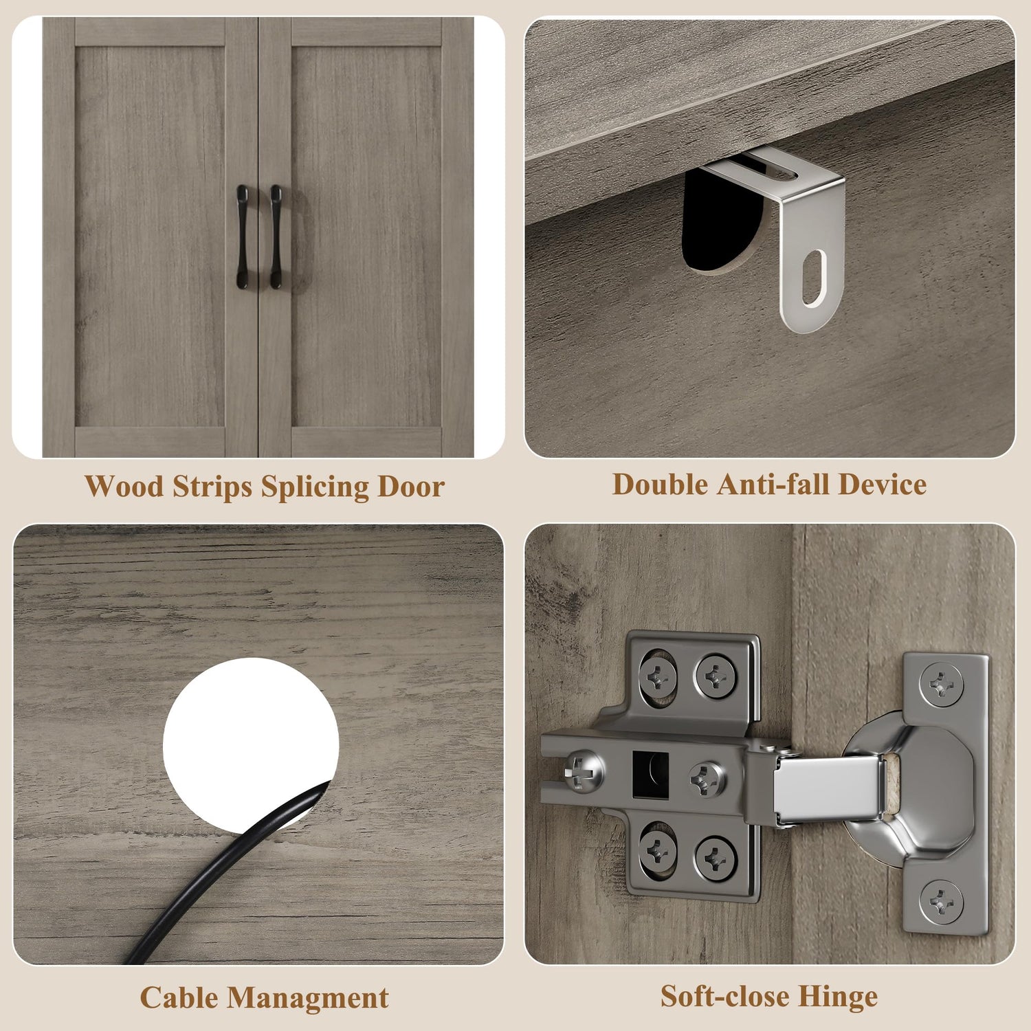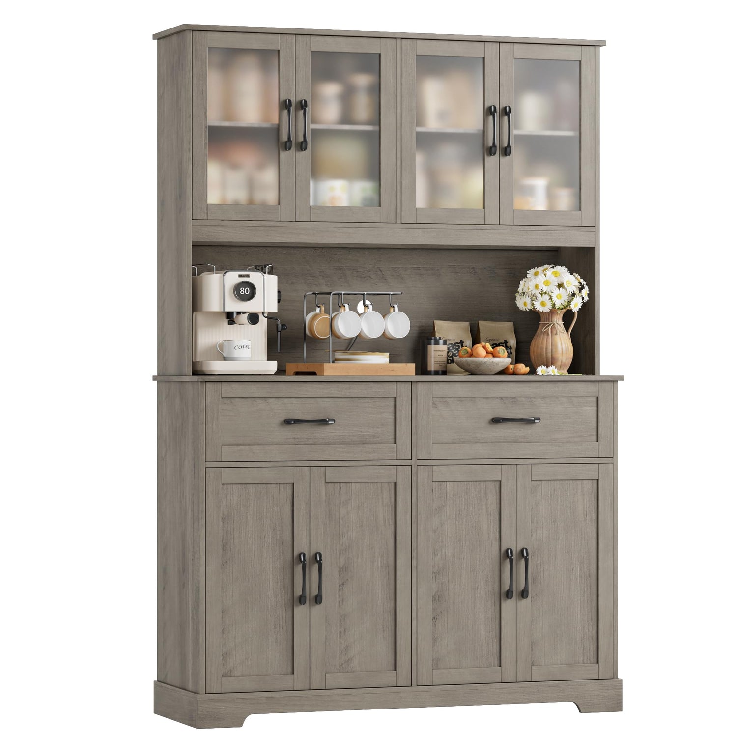 - Durable & Stylish Design: Buffer hinges ensure durability and gentle closing. Cable - wire holes create a modern, organized pantry for food and electronics. The 4 frosted glass doors not only add aesthetic appeal but also let you view contents without opening doors. Ideal for any American kitchen, whether you're a pro chef or a home cook