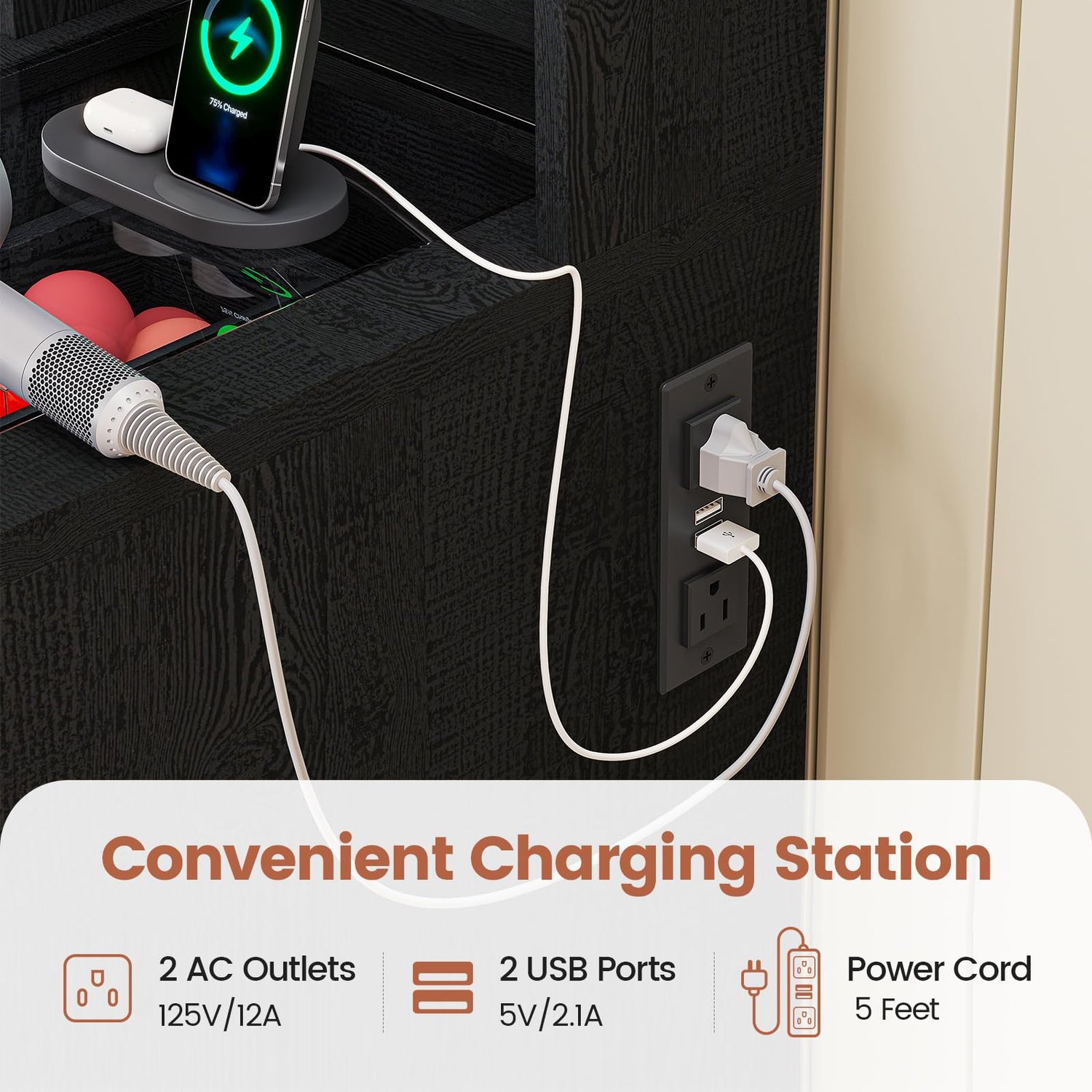 - 【Convenient Charging Station】No more anxiety about charging! The built-in power strip of this makeup table includes 2 USB ports and 2 standard outlets, making it easier to connect a hair dryer, beauty instrument, and charge mobile phones, tablets, or other electronic devices at the same time. Bringing you more convenience.