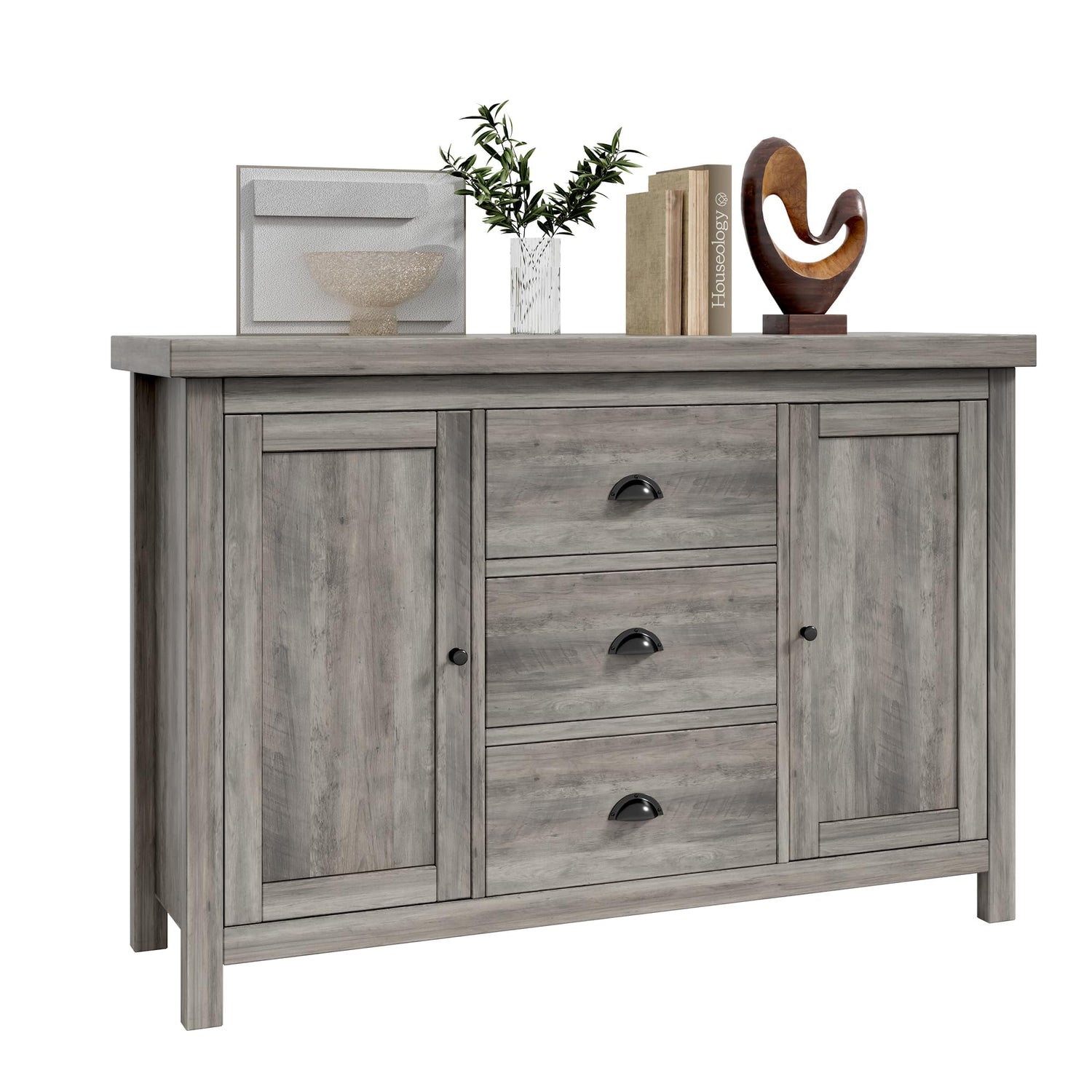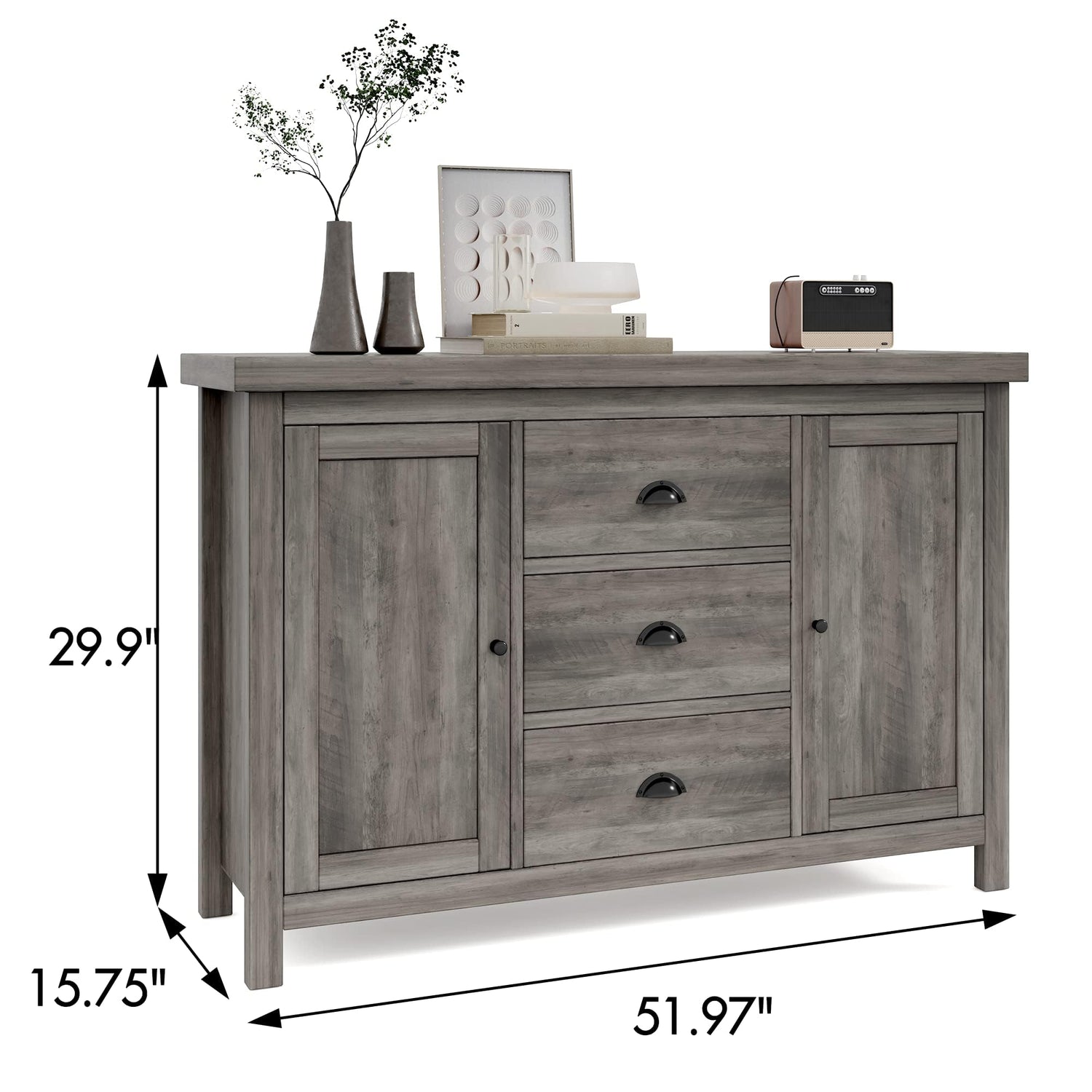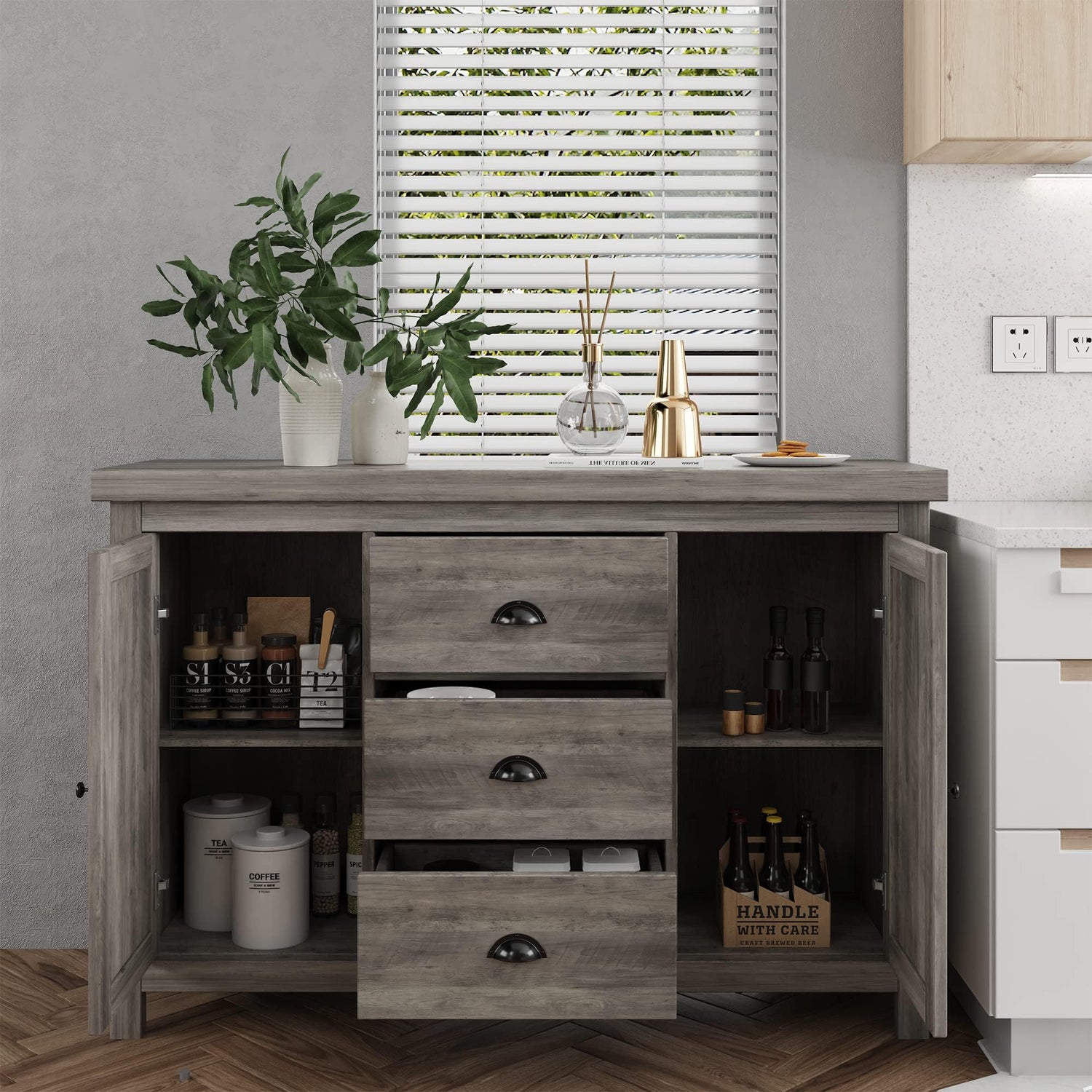 Buffet Sideboards, Kitchen Storage Cabinet, Large Storage with 3 Drawers and 2 Doors Sideboard, Farmhouse Coffee Bar Cabinet with Retro Cabinet Handles, Adjustable Shelf for Living Room, Ash Grey