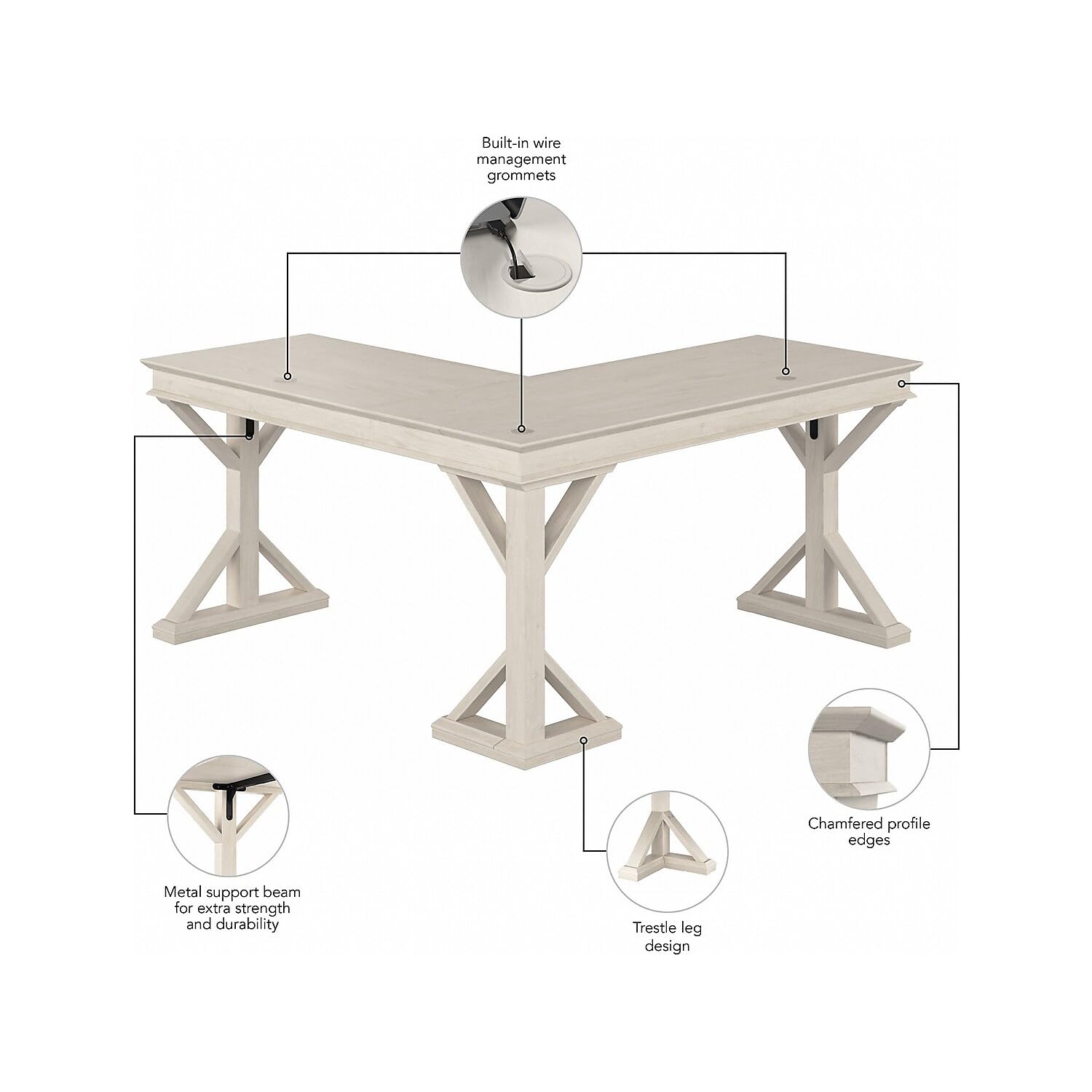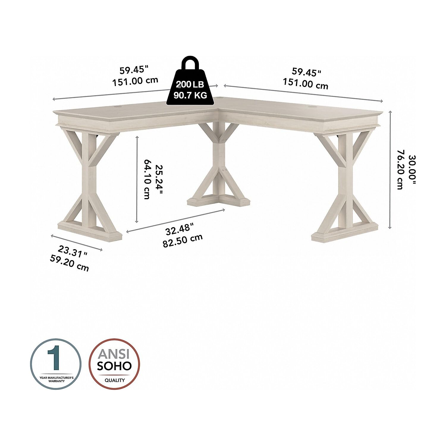 Bush Furniture Homestead Farmhouse L Shaped Desk, 60W, Linen White Oak