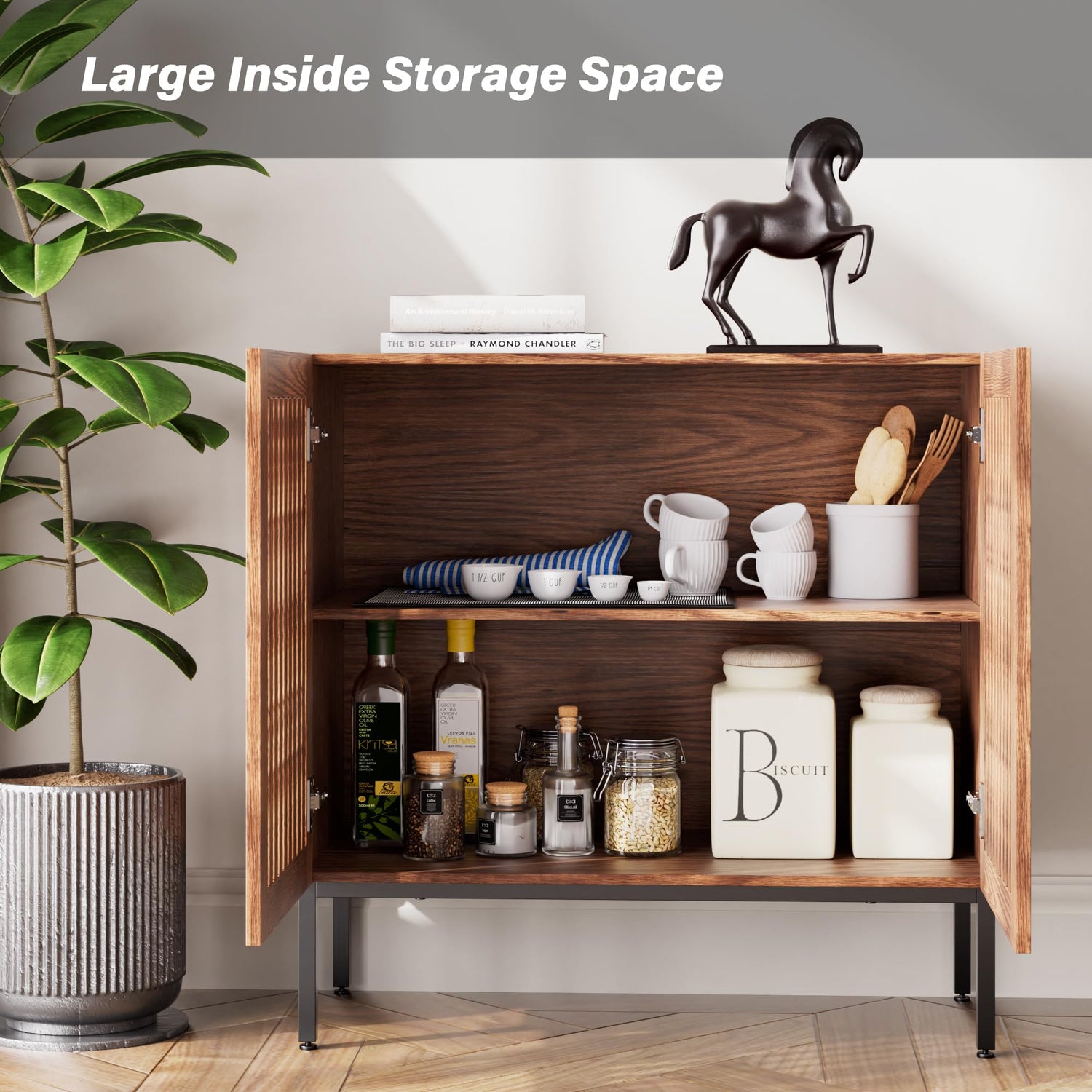 - [Unique Design] This Farmhouse TV stand lies in its unique design that seamlessly merges rural charm with modern elegance. The cabinet's brown surface exudes a warm and inviting ambiance, perfectly capturing the essence of a cozy country home. The grating door design adds a touch of rustic style, while also allowing for easy access to the storage compartments.