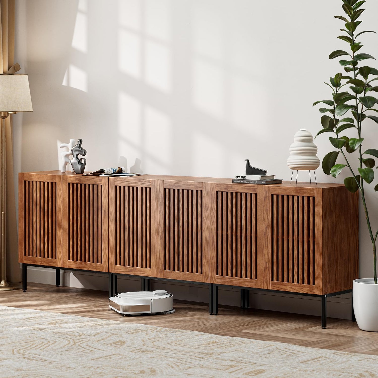 - [Easy to Assemble] The wood TV stand measures 94.5 x 15.3 x 31.5 inches, which comes with detailed instructions and all hardware needed for installation so that you can easily assemble it by yourself.