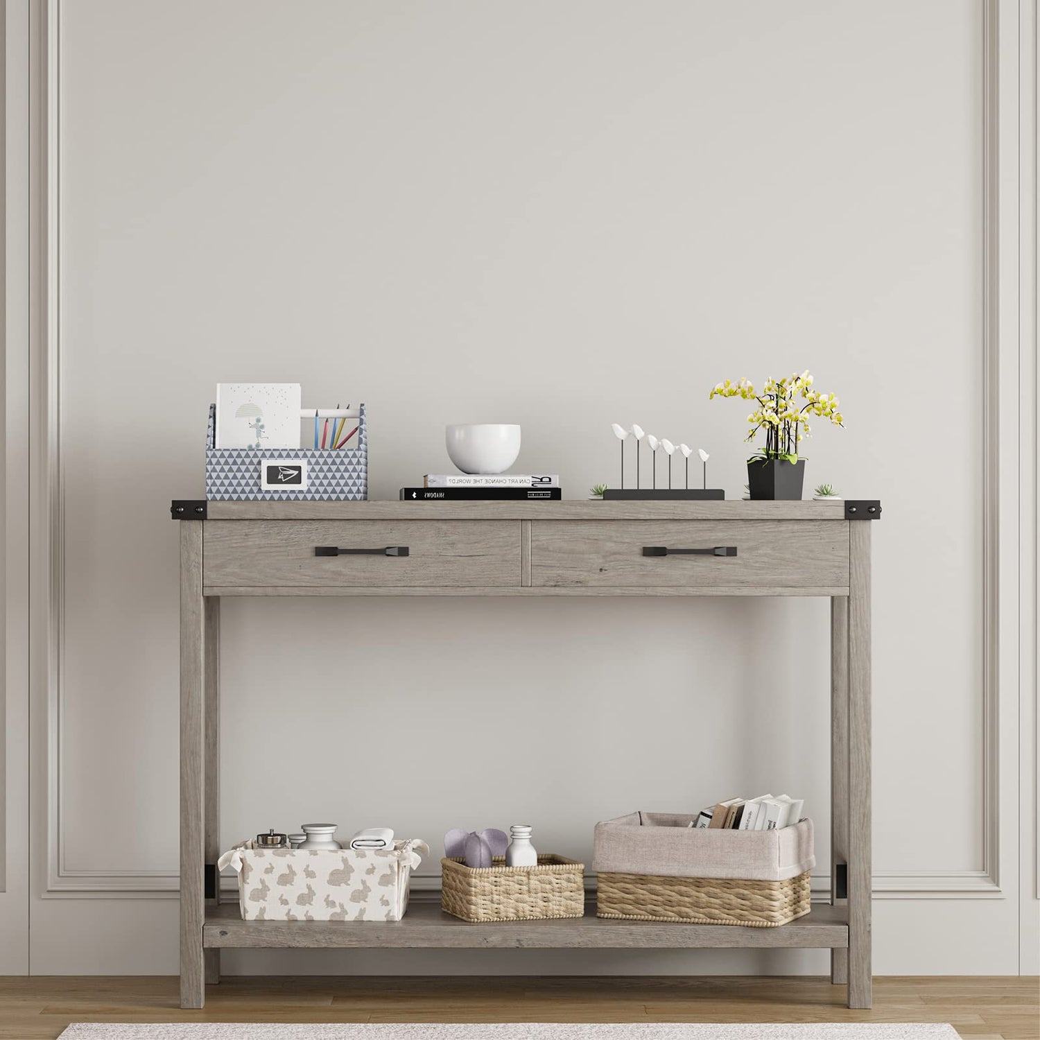 CABIHOME Farmhouse Entryway Table, Wooden Console Table with Drawers, 2 Tier Sofa Table with Storage, Console Table for Entryway, Living Room, Hallway, Foyer-Grey