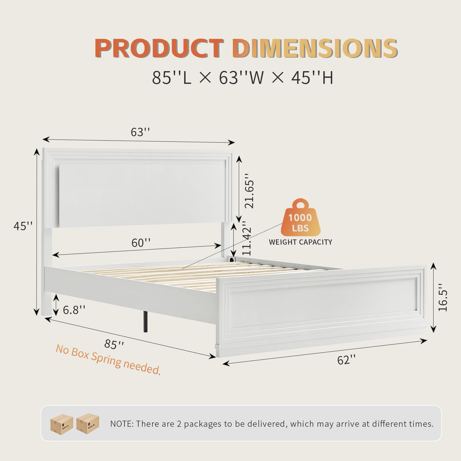 - EASY ASSEMBLY & DELIVERY NOTE: This queen bed frame is designed for hassle-free setup, it comes with clear instructions and all necessary tools—no professionals required. [Please note: Shipped in 2 packages, which may arrive separately.]