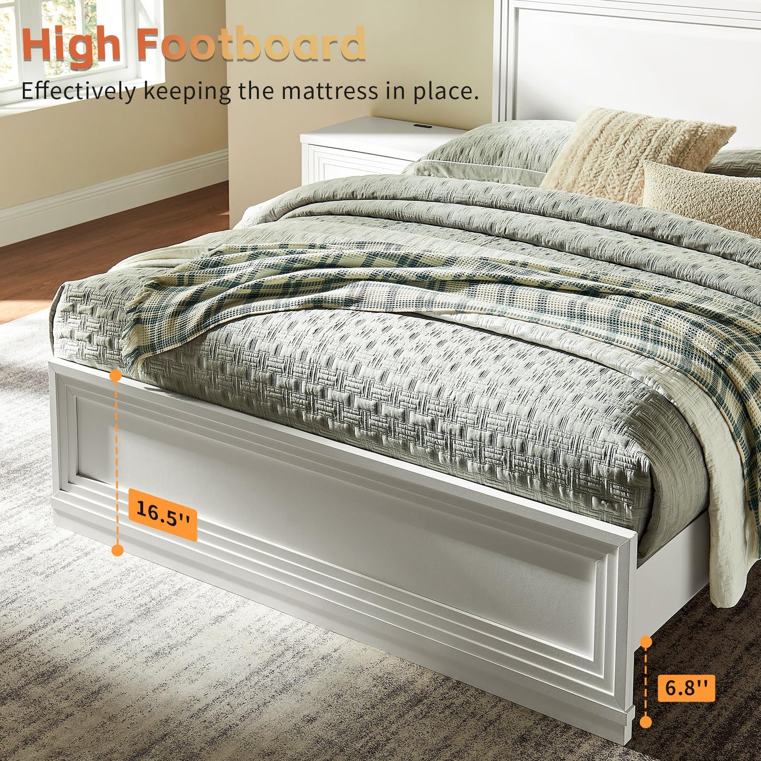 - NO BOX SPRING NEEDED: Constructed with evenly spaced, sturdy wooden slats, the modern large bed frame allows for direct mattress placement. And the high footboard effectively keeps the mattress in place, preventing the mattress from sagging or shifting.