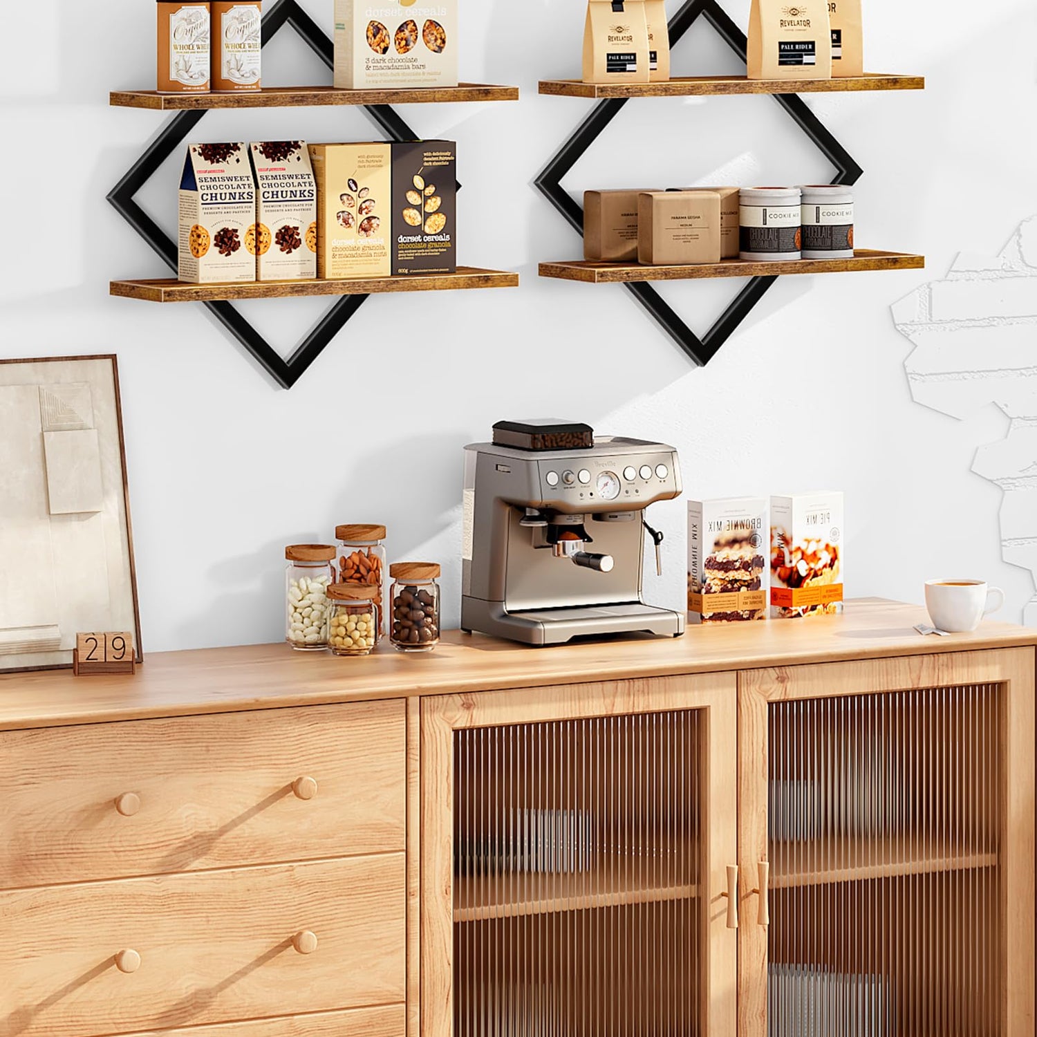 - Versatile for Multiple Settings, Matches All Styles: The 2-tier floating shelves are perfect for various home settings, seamlessly blending into living rooms, coffee bars, kitchens, or bathrooms, enhancing the space's aesthetics
