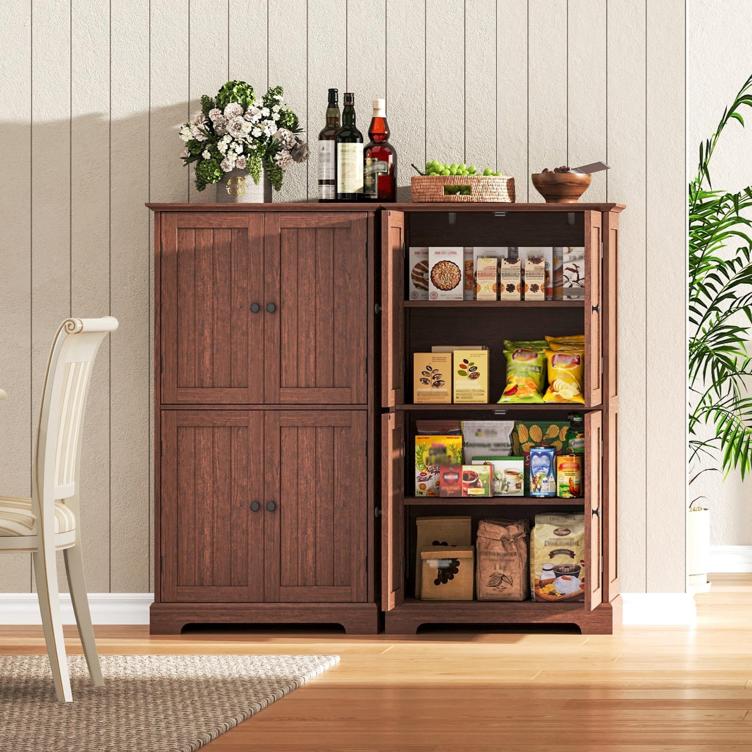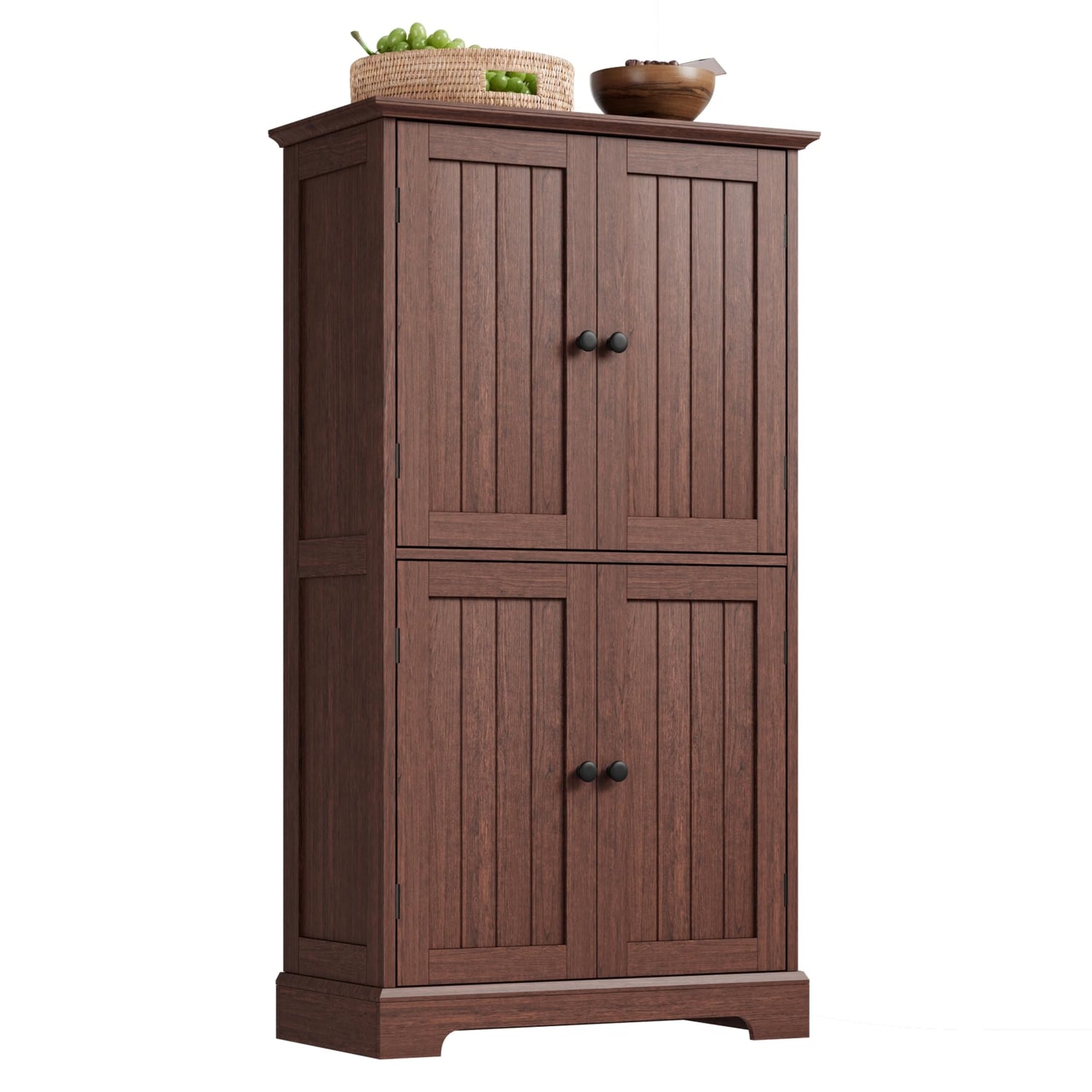 ChooChoo Bathroom Floor Cabinet, Farmhouse Bathroom Storage Cabinet with 4 Doors and Adjustable Shelves, Pantry Cabinet for Living Room, Kitchen, Walnut