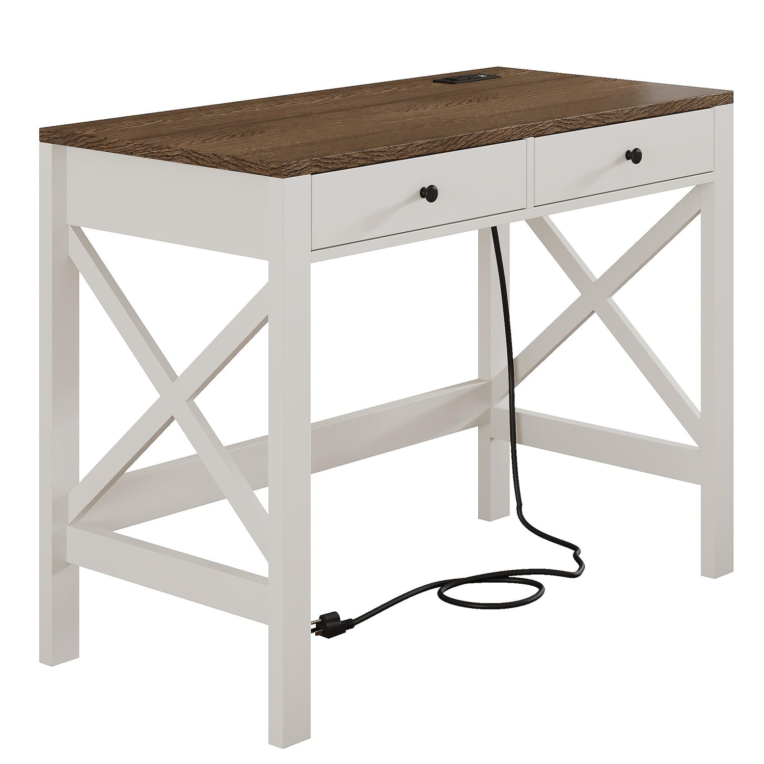 ChooChoo Farmhouse Desk with USB Charging Ports and Power Outlets, 39" Computer Desk with Drawers, Small Study Writing Table with Stable X Frame for Home Office