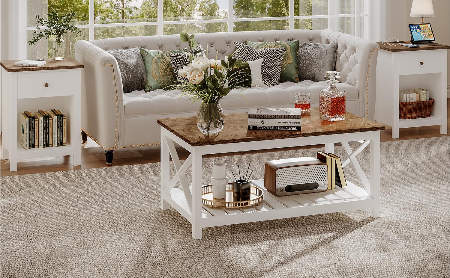 - 【Simple & Modern Design】The 1 drawer farmhouse end table set of 2 features modern design with clean lines will be fit for your spacious and bright room.