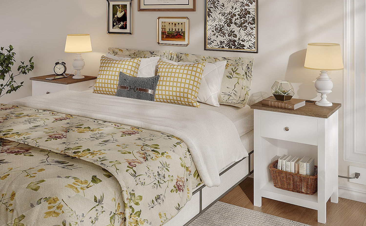 - 【Bedside Storage】The white end table with drawer and open shelf provide plenty of storage to keep your books, eyeglasses and personal items, this white end table is your perfect bedroom companion.