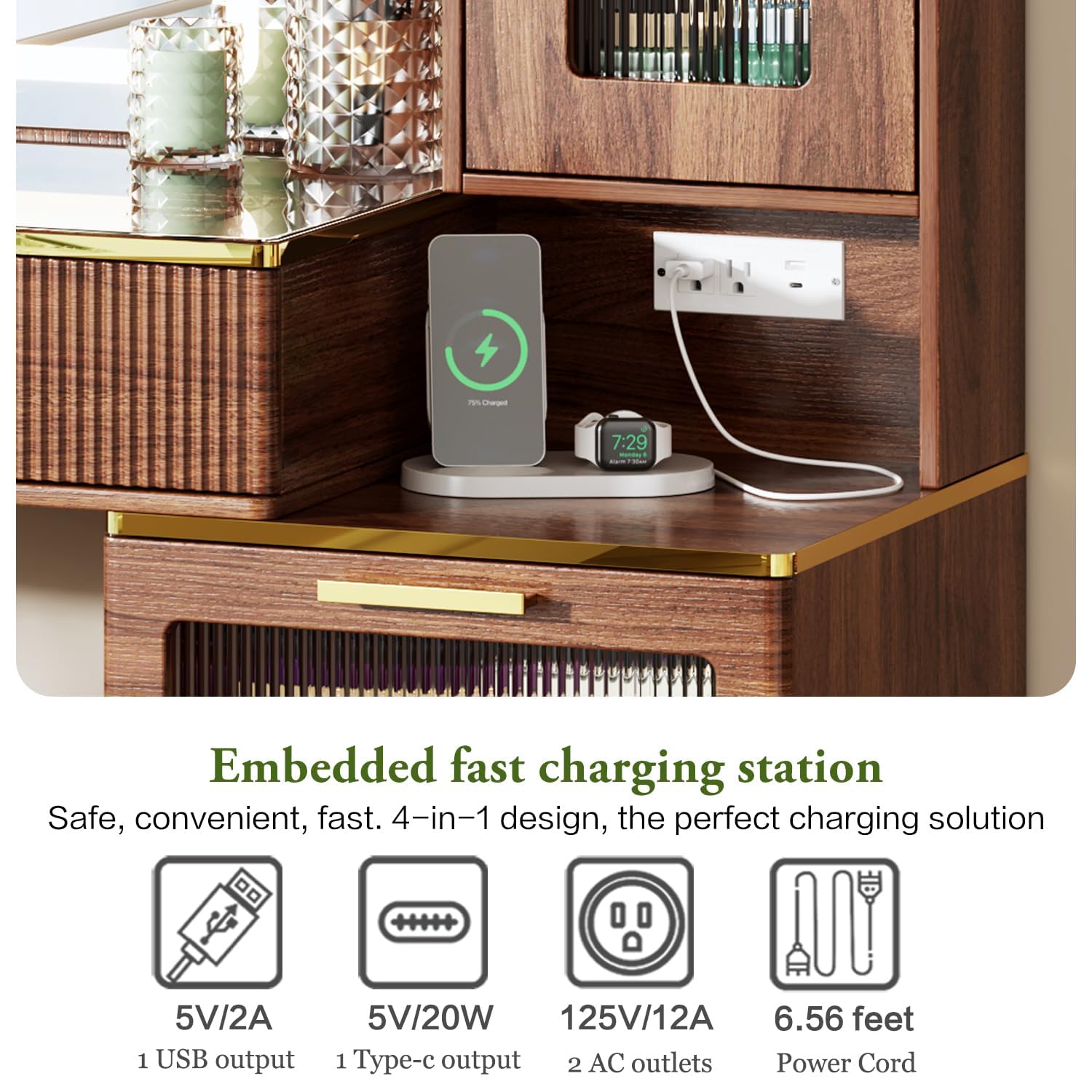 - 【Vanity Table with Charging Station】-This makeup vanity features a charging station, includes 2 standard plug sockets and 2 USB ports, which can be more convenient to connect your hair dryer, curling iron, and it can also charge your phone, tablet or other mobile devices, The unique design is more convenient for you to use.