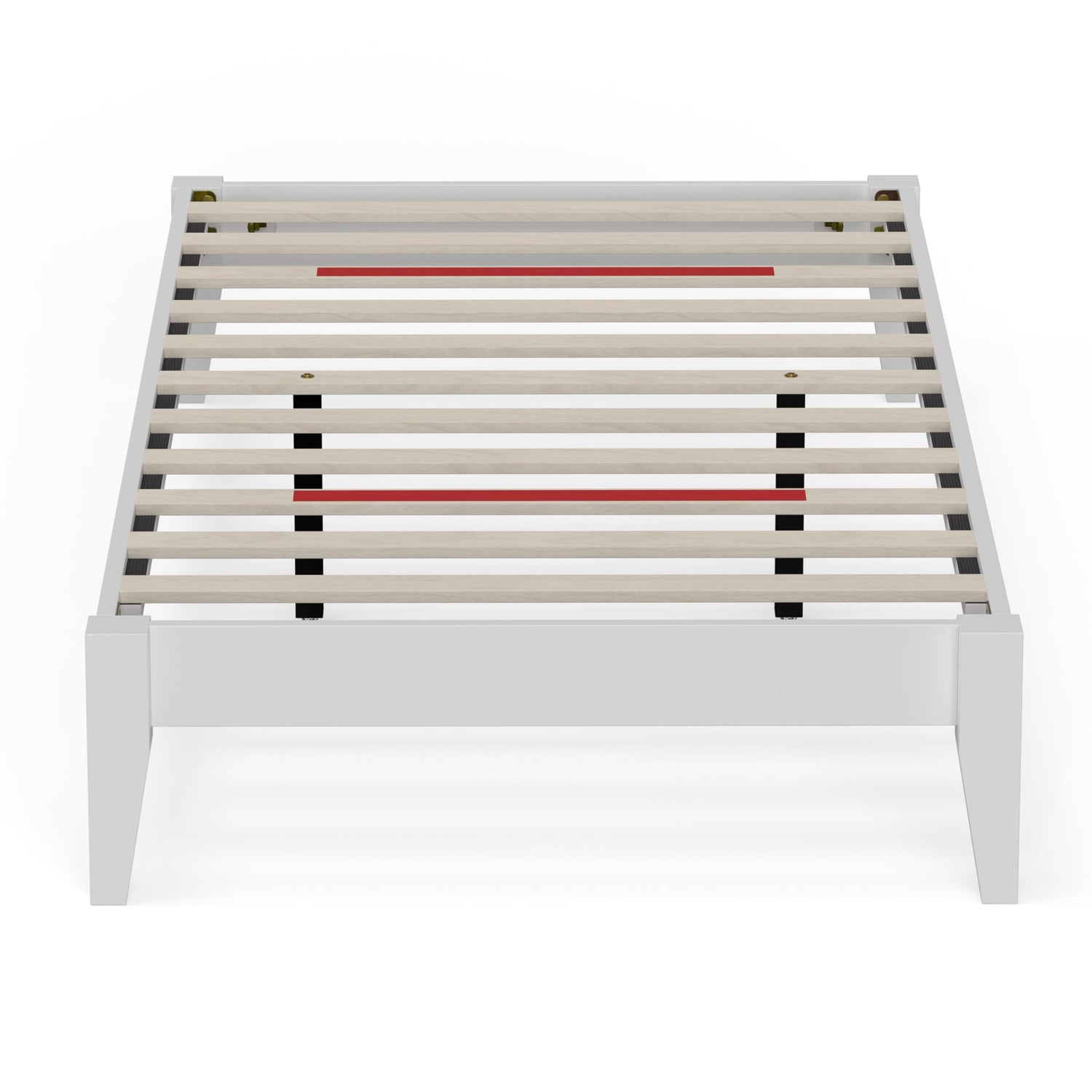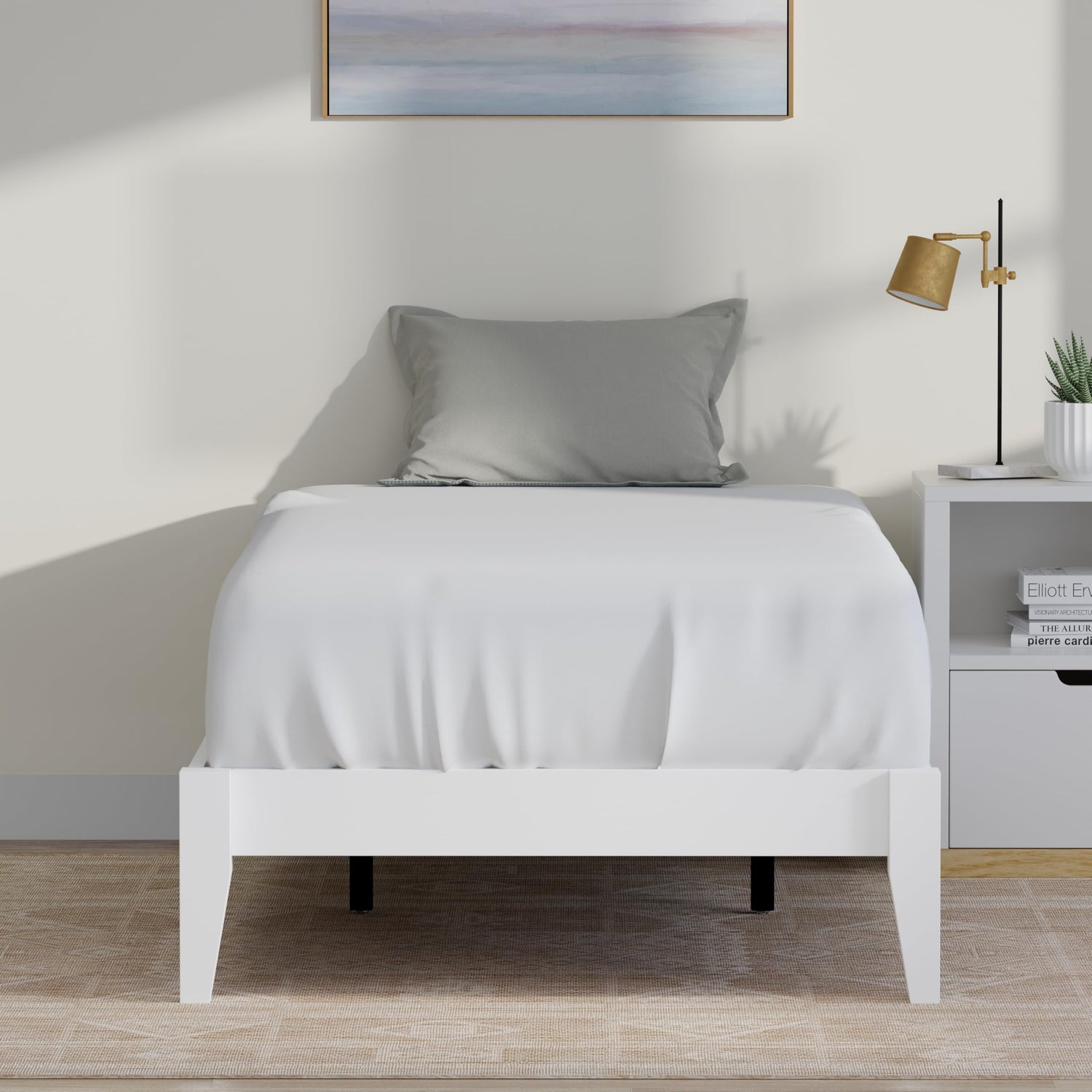 ComfIQ Solid Wood Platform Bed with Outset Legs (No Headboard) – Durable Frame, Easy Assembly, Ample Underbed Storage – Twin Size, White