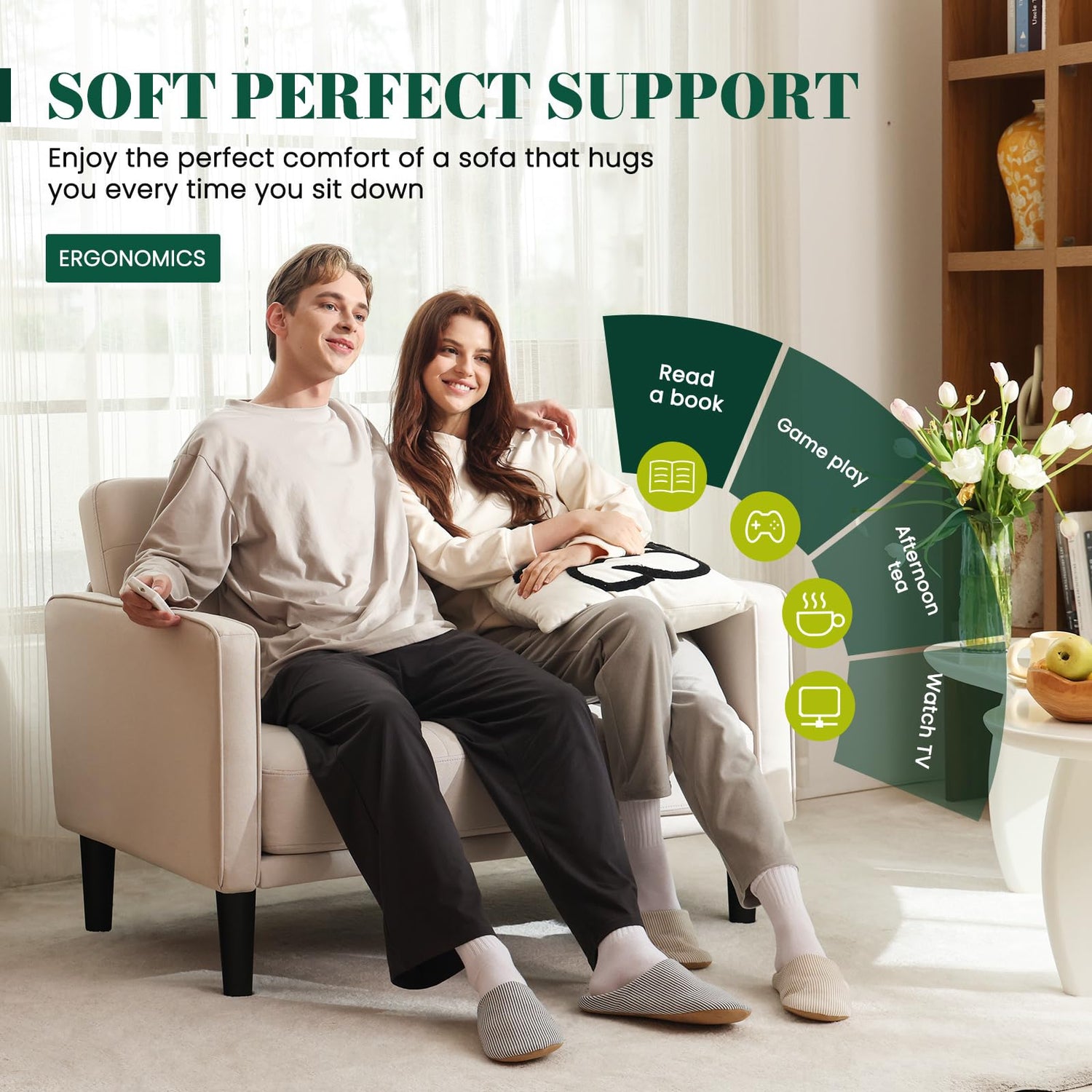 COUCHOICE 45" Beige Comfy Loveseat Sofa for Small Spaces, Small Sofa with Removable Washable Cover, High Density Foam Cushions, Solid Wood Frame, Ideal for Apartments, Easy to Assemble