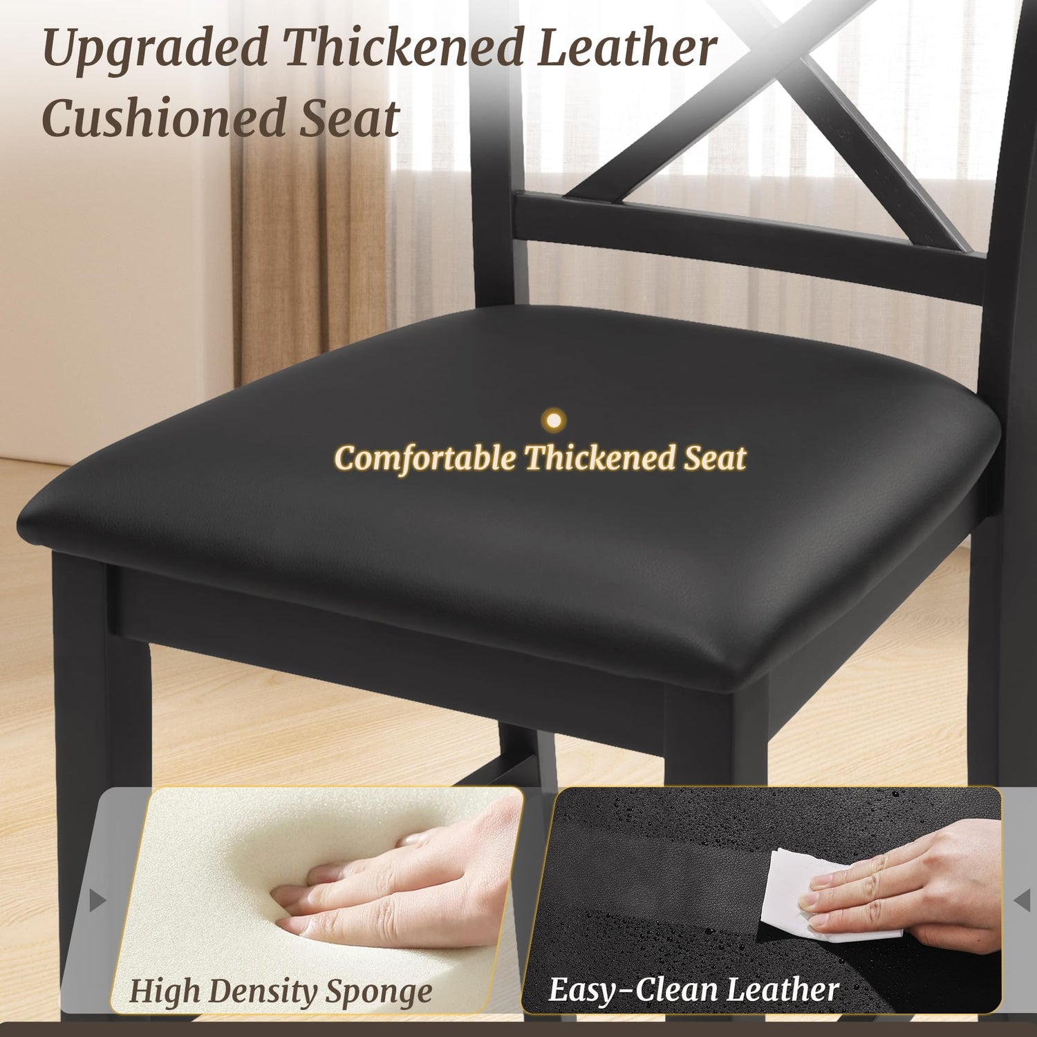 - Comfortable Upholstered Seat: The seat of the bar stool is made of PU leather, which is resistant to stains; When stains appear on the seat cushion, simply wipe it with clean water, making cleaning convenient and saving both time and effort; The thicker cushion provides greater comfort, and the footrest design is more ergonomic