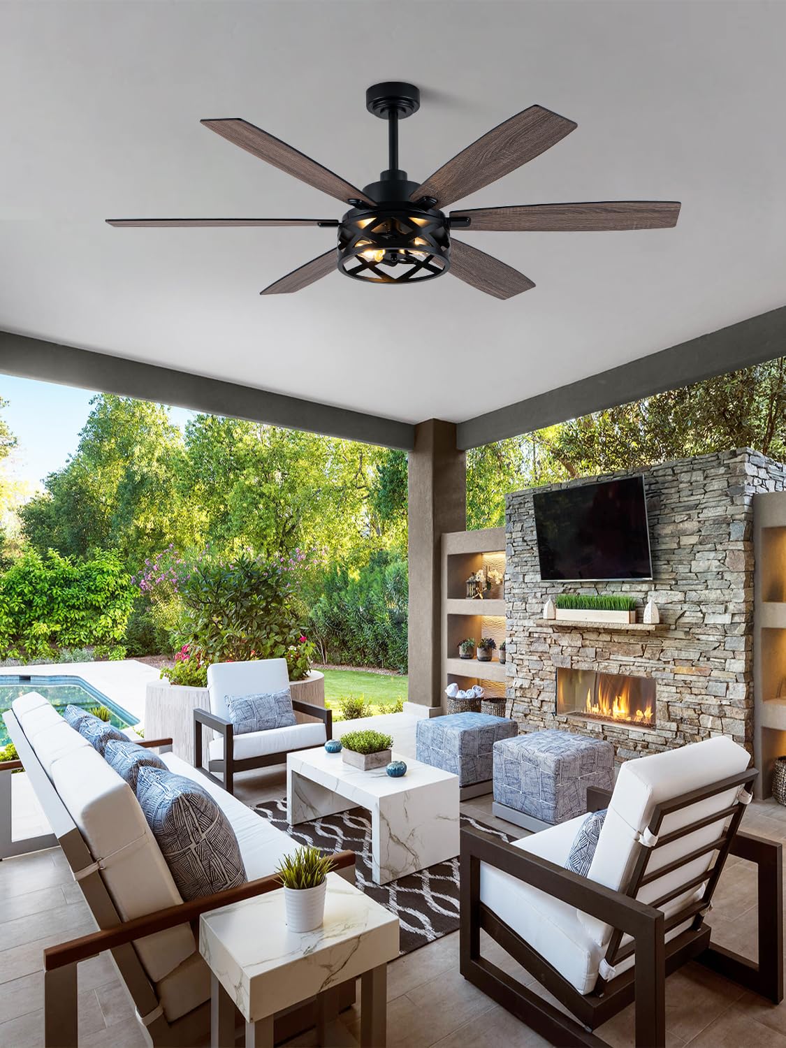 - Whisper-Quite Motor:Featuring a reversible DC motor, this black caged ceiling fan allows for easy adjustment of airflow direction via the remote controller, switching between downdraft mode for summer and updraft mode for winter. Operating at under 30dB, it ensures a quiet environment and boasts high energy efficiency, consuming up to 70% less power compared to AC motors.