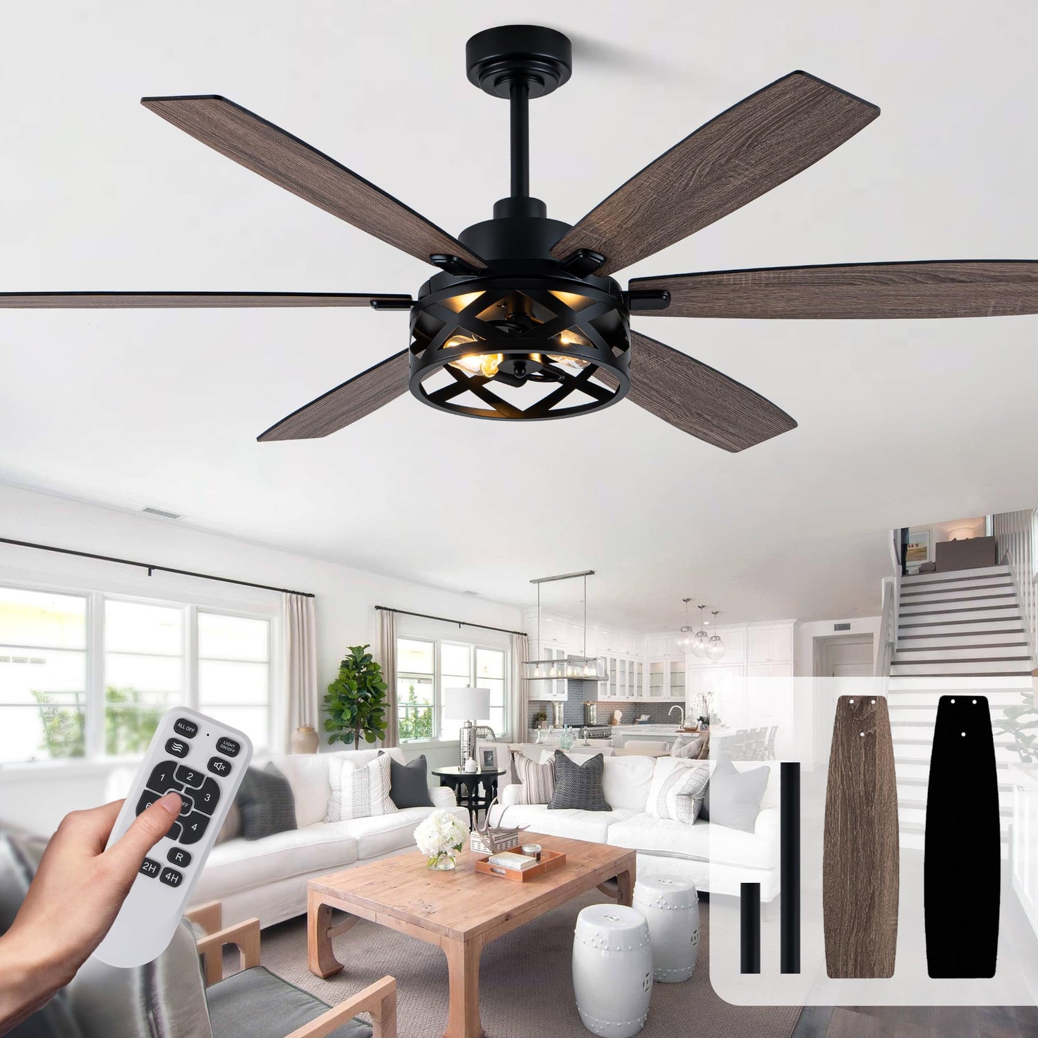 Curve Curio 60 Inch Farmhouse Ceiling Fan with Light and Remote Black Rustic Ceiling Fan Quiet and Reversible DC Motor Caged Chandelier Fan for Living Room Bedroom