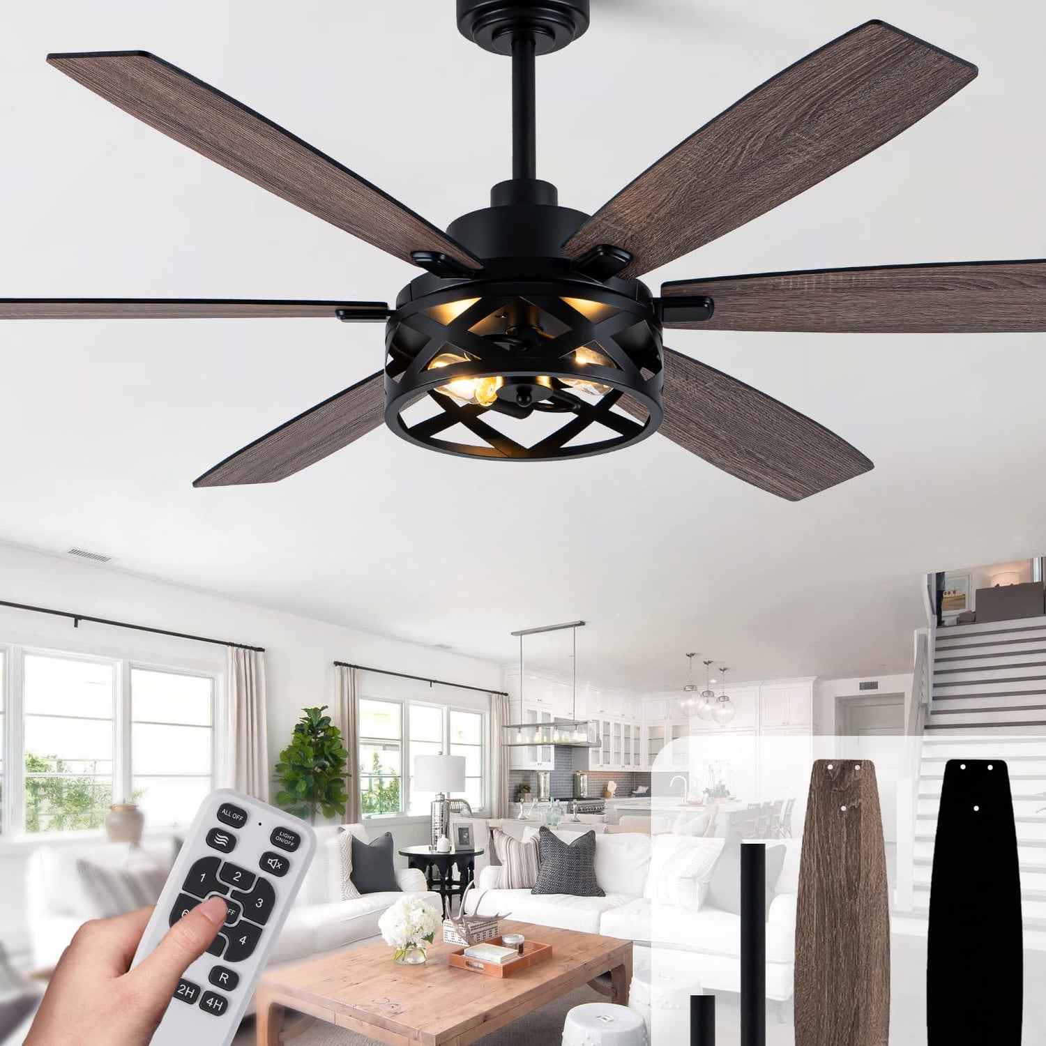 - Whisper-Quite Motor:Featuring a reversible DC motor, this black caged ceiling fan allows for easy adjustment of airflow direction via the remote controller, switching between downdraft mode for summer and updraft mode for winter. Operating at under 30dB, it ensures a quiet environment and boasts high energy efficiency, consuming up to 70% less power compared to AC motors.