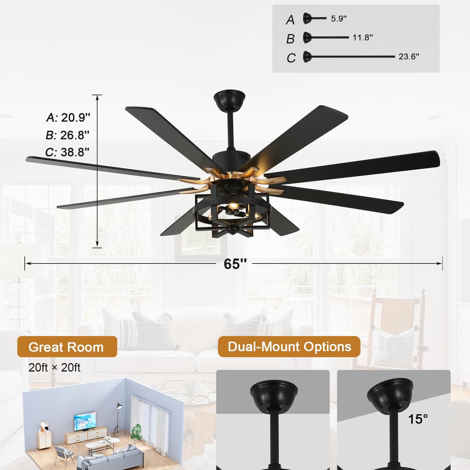 - Remote control: The large ceiling fan with lights is equipped with an easy-to-use remote control, allowing you to operate various functions of the ceiling fan light fixture without leaving your seat.