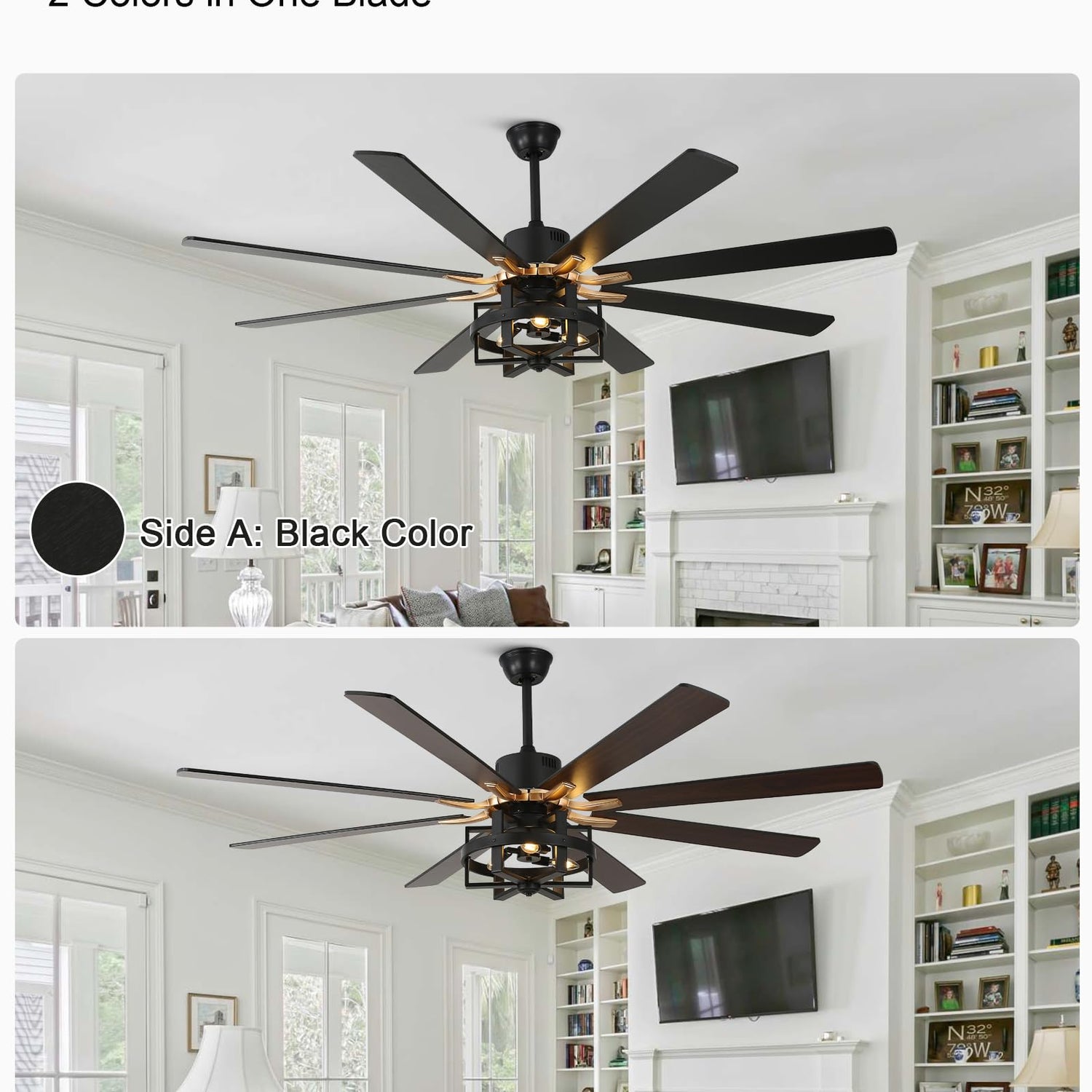 - Eye-catching Design: The fan blades are double-sided in black and dark wood color. The dark wood color showcases the beauty of nature, while the black color reflects the beauty of modern art
