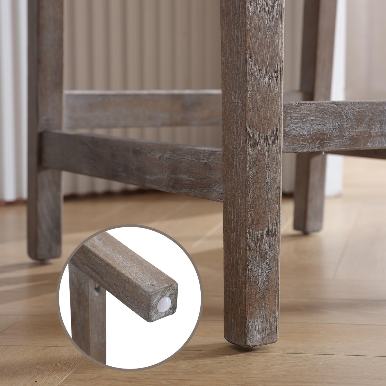 - Distressed Legs - The legs and footrests are made of high-quality solid wood, which is durable and can hold up to 300 lbs. In addition, the distressed craftsmanship adds a rustic feeling