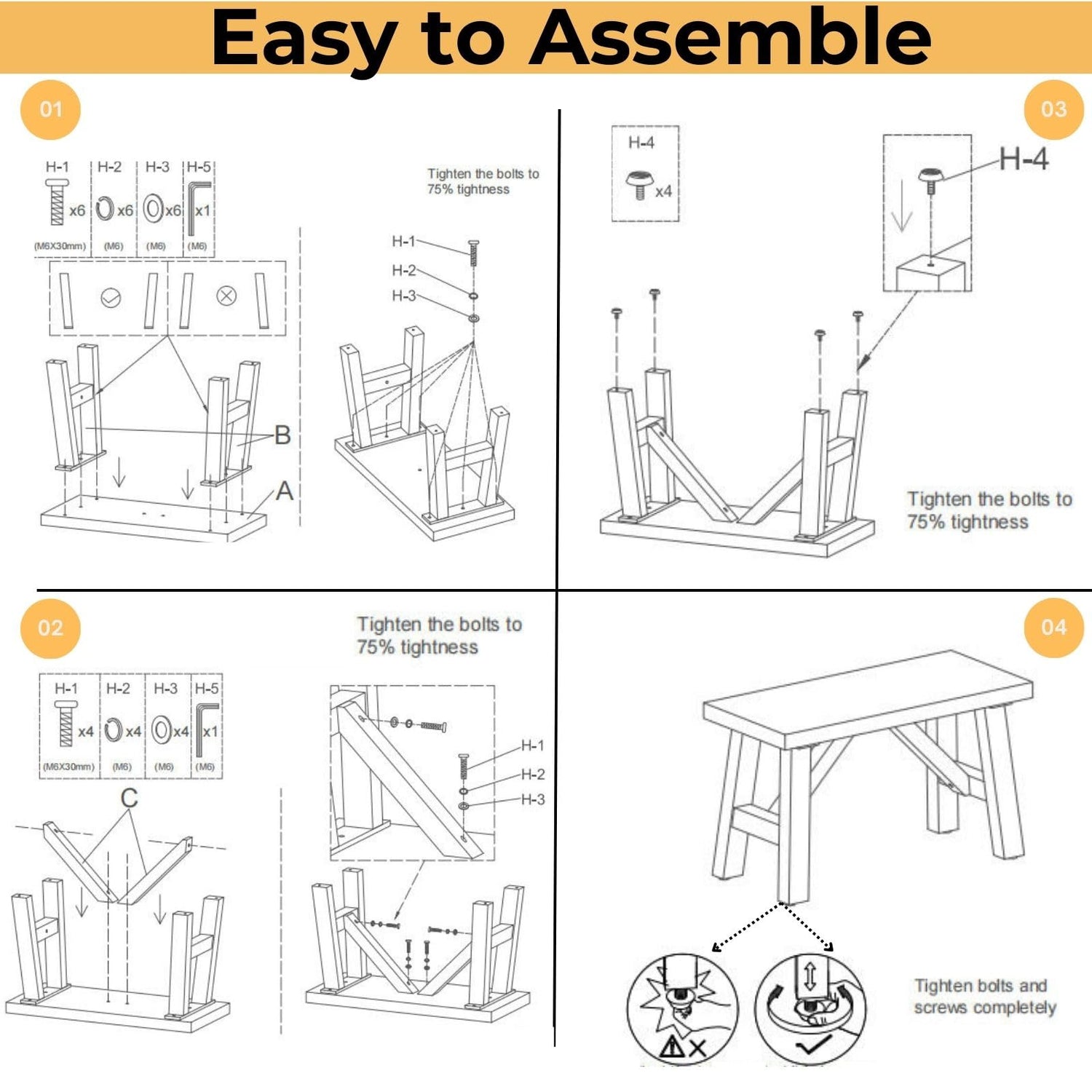 • Easy Assembly: This rustic solid wood bench comes with clear and detailed instructions and installation tools. It's extremely easy and quick to put together,assembly is hassle-free in just 10 minutes